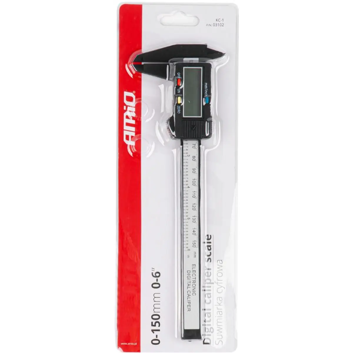 Ferramenta indispensável para qualquer entusiasta de bricolage, ideal para utilização em casa, oficina ou garagem. Fabricado em plástico robusto e rígido, não sofre deformações durante a medição. Com um curso de 150 mm, permite medições externas, internas e de profundidade com elevada precisão. Inclui ecrã LCD de grandes dimensões e alimentação por pilha LR44.