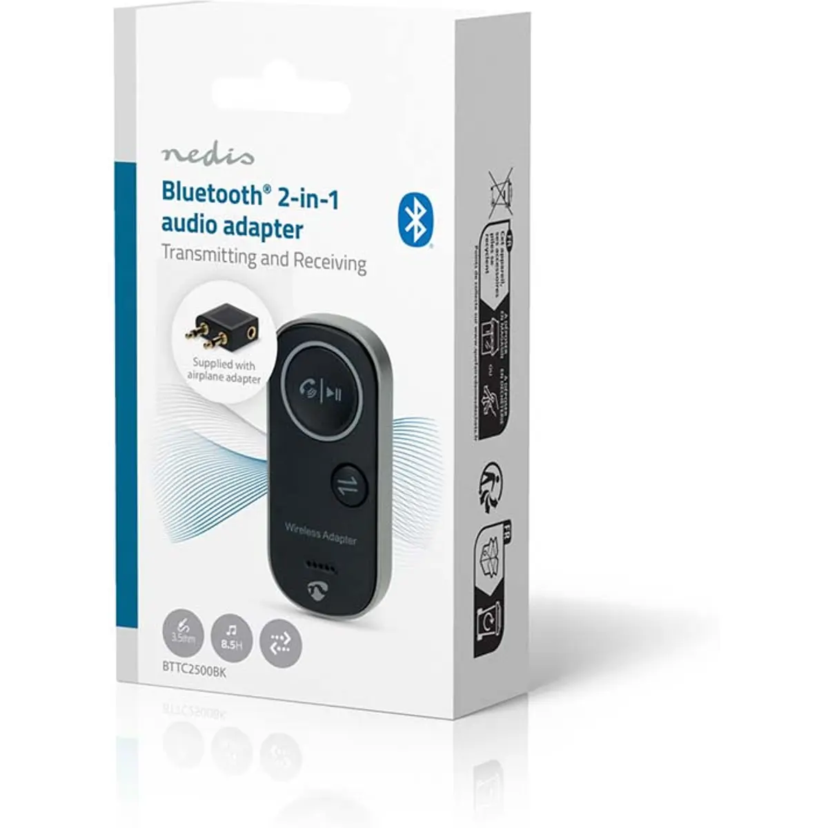 O adaptador Nedis 2-em-1 permite transmitir e receber áudio via Bluetooth®, transformando dispositivos não-Bluetooth em transmissor sem fios e adaptando equipamentos com fios para reprodução sem fios. Ideal para casa, viagem ou carro, proporciona áudio de alta qualidade com baixa latência e funcionalidade mãos-livres.
