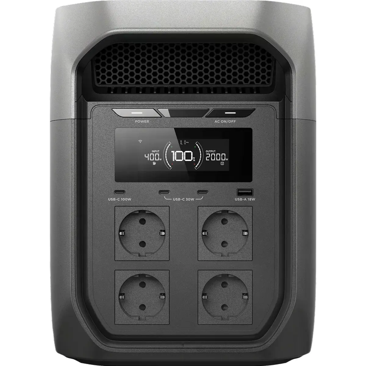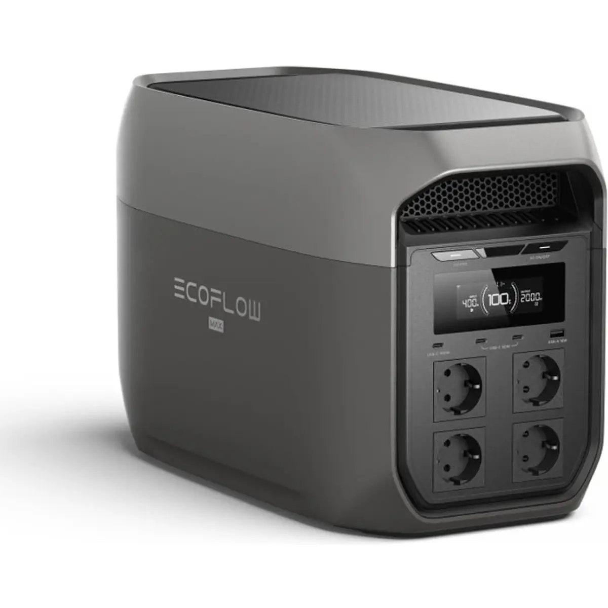 A EcoFlow DELTA 3 Max é uma estação de energia portátil pensada para backup doméstico, caravanas e cenários off-grid, com 2048Wh (≈2kWh) e saída AC contínua de 2400W (onda sinusoidal pura). Integra UPS com comutação <10 ms, bateria LiFePO₄ (LFP), e conectividade Wi-Fi/Bluetooth com controlo via app, permitindo monitorização e gestão do consumo. Suporta carregamento por rede elétrica (até 2300W), painéis solares (até 500W) e automóvel (12V/24V⎓8A), oferecendo uma solução prática e fiável para manter equipamentos essenciais a funcionar.