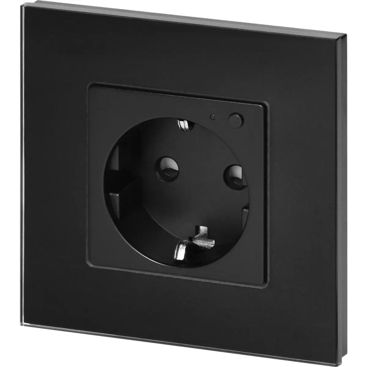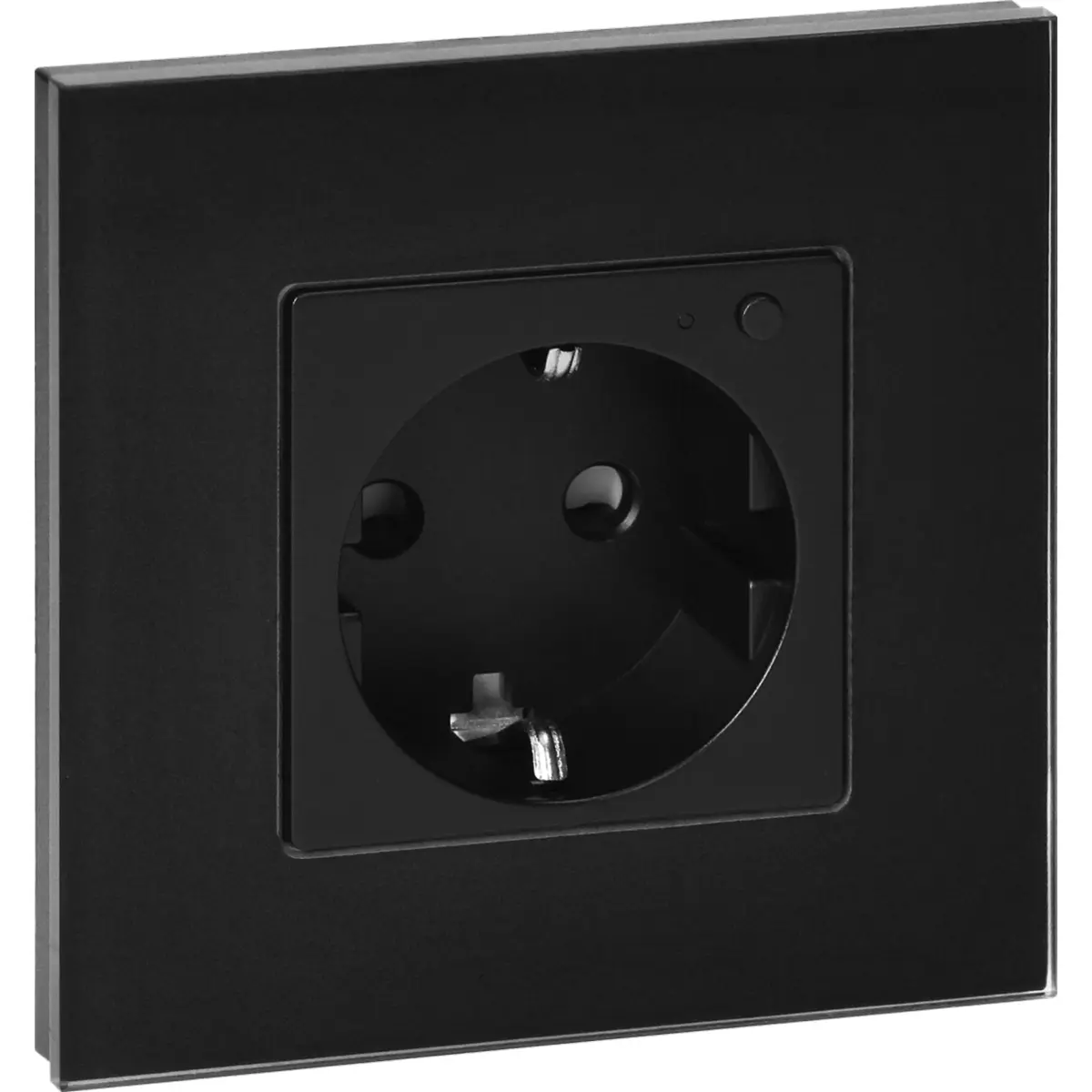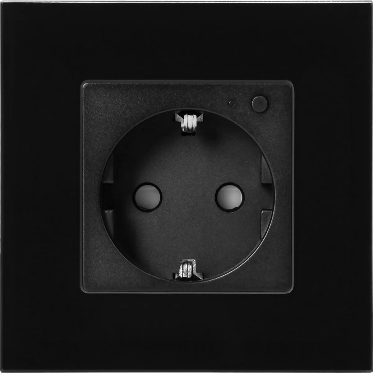 A tomada destina-se a ser montada à face. Tem um contacto de proteção (Schuko). É feita de vidro preto brilhante, o que confere ao interior um aspeto moderno. O índice IP20 permite a instalação em divisões secas, como salas de estar, corredores ou quartos. As dimensões são 86x86 mm. Disponível também na cor preta.