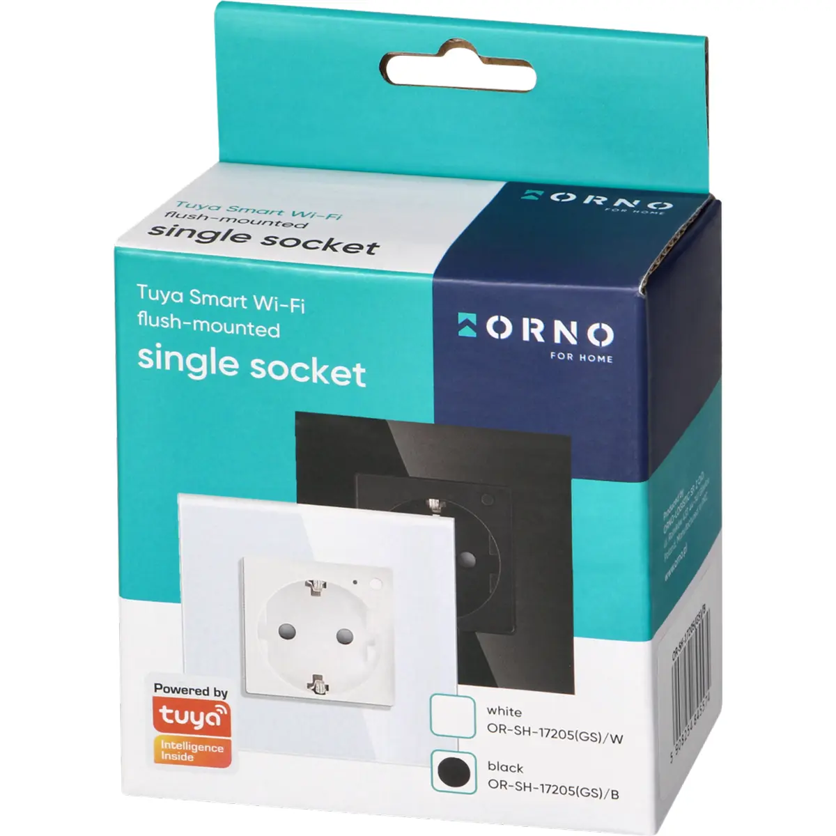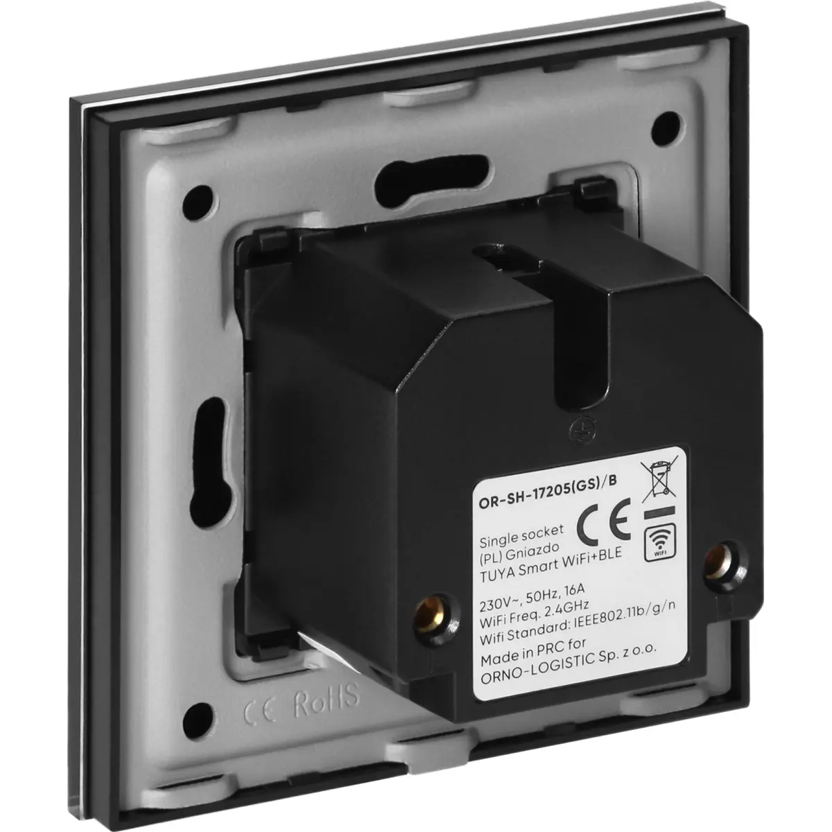 Orno OR-SH-17205(GS)/B - Tomada inteligente Schuko de embutir WiFi 2.4GHz (compatível c/ TUYA) - Preto