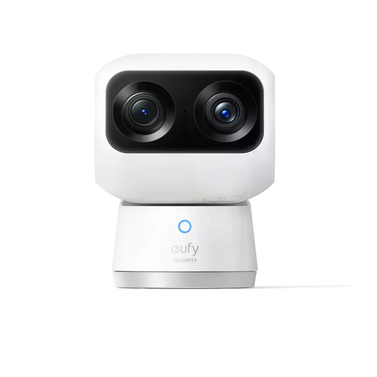 A eufy Security Indoor Cam S350 redefine a vigilância interior ao combinar duas câmaras de alta resolução — uma grande-angular 4K e uma teleobjetiva 2K — com zoom híbrido de 8×, visão noturna até 40 ft (12 m) e movimentos panorâmicos de 360°. A imagem é incrivelmente nítida, permitindo identificar rostos mesmo em condições de pouca luz, enquanto a IA integrada deteta pessoas, animais e choro.