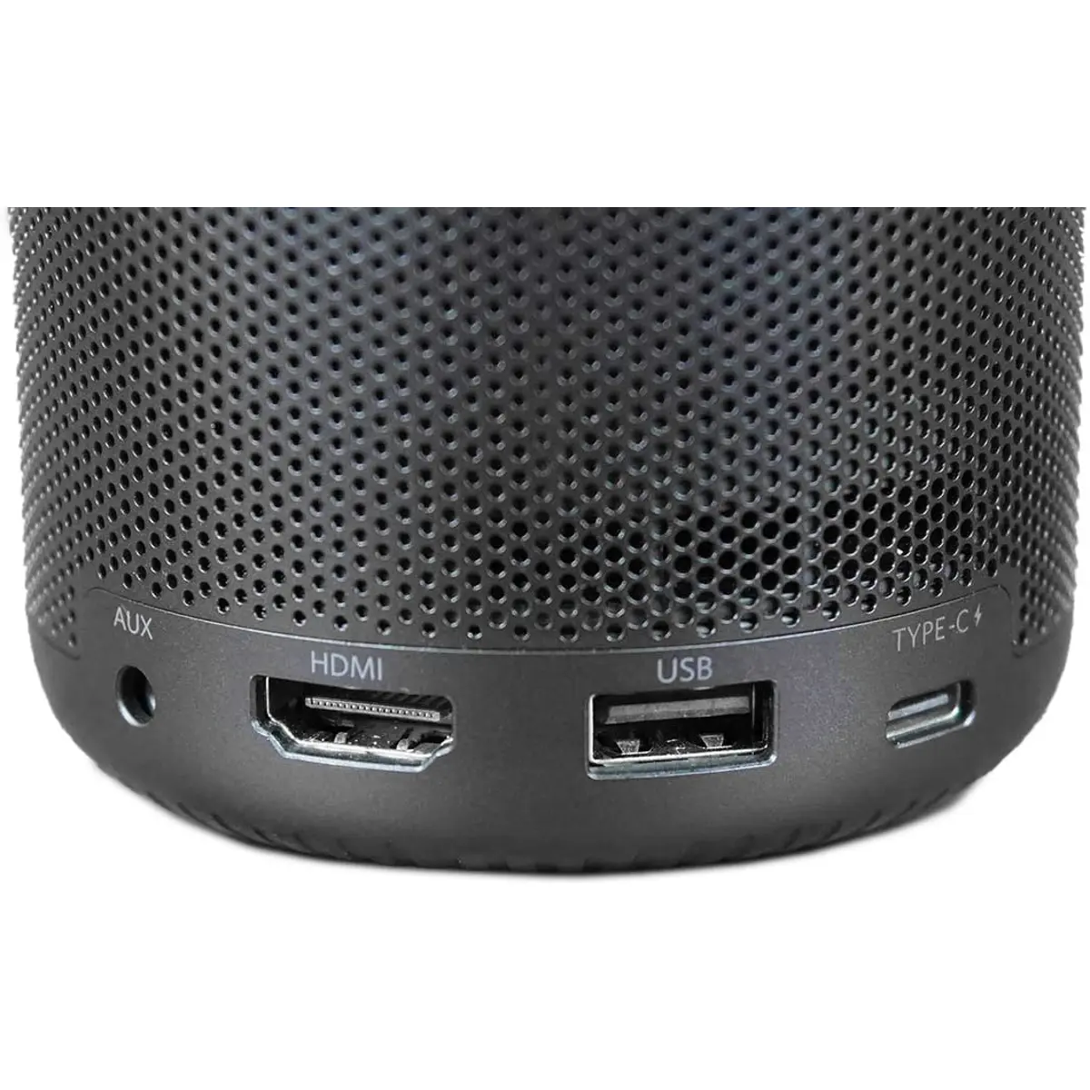 A bateria interna permite ver um filme completo de cerca de 2,5 horas sem ligar à tomada, e usar o projetor como coluna Bluetooth autónoma durante várias horas. Basta mudar para o modo “Bluetooth Speaker” no botão traseiro e emparelhar o telemóvel para ouvir música, podcasts ou rádio online.