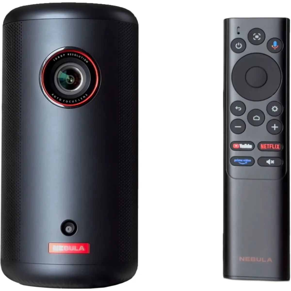 NEBULA Capsule 3 é um mini projetor LED Full HD ultra-portátil com Google TV e Netflix oficial, pensado para transformar qualquer parede num ecrã até 120" em poucos segundos. Combina focagem e correção de keystone automáticas, bateria integrada e som de 8 W num corpo cilíndrico compacto que cabe facilmente numa mochila.