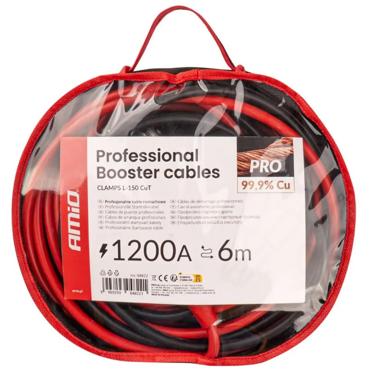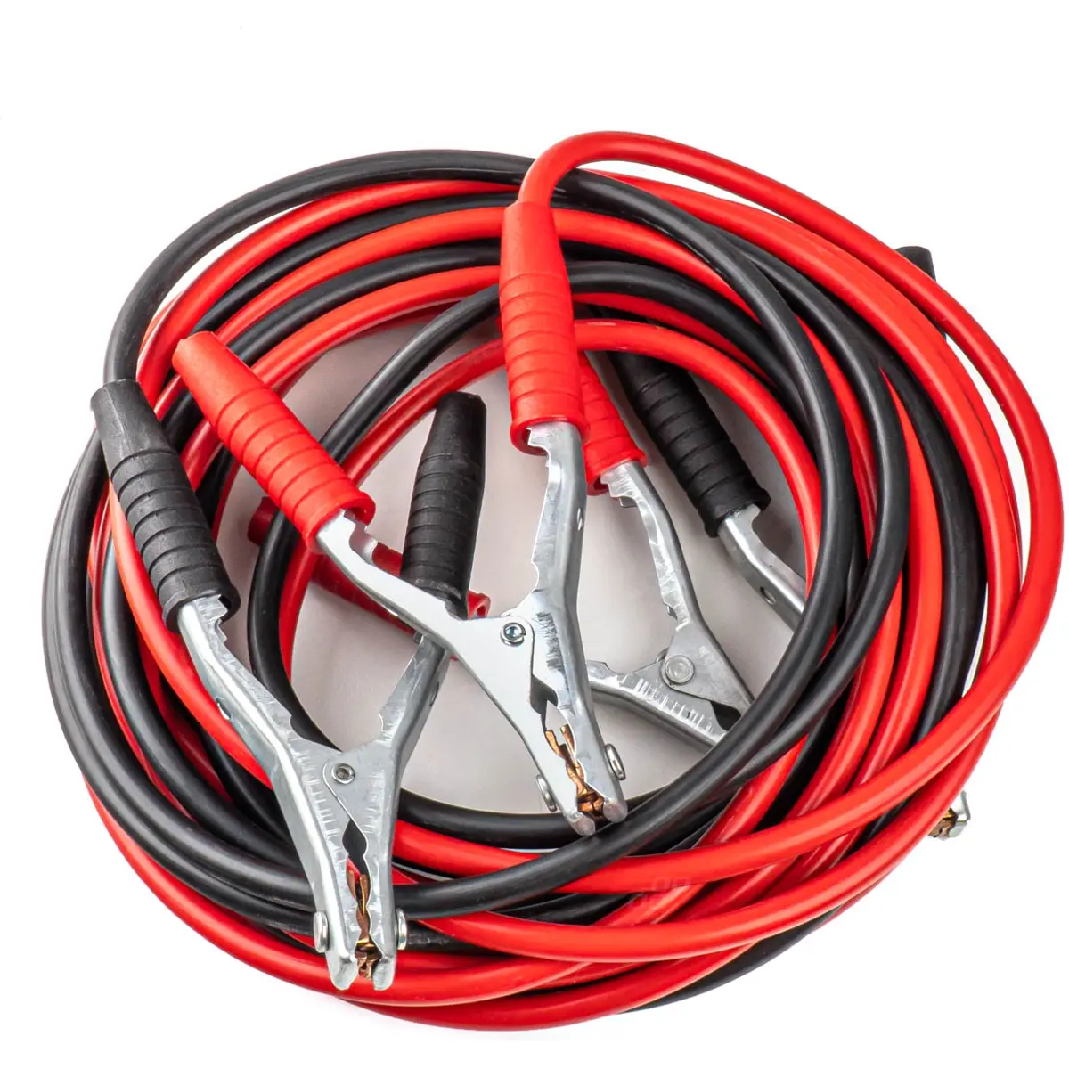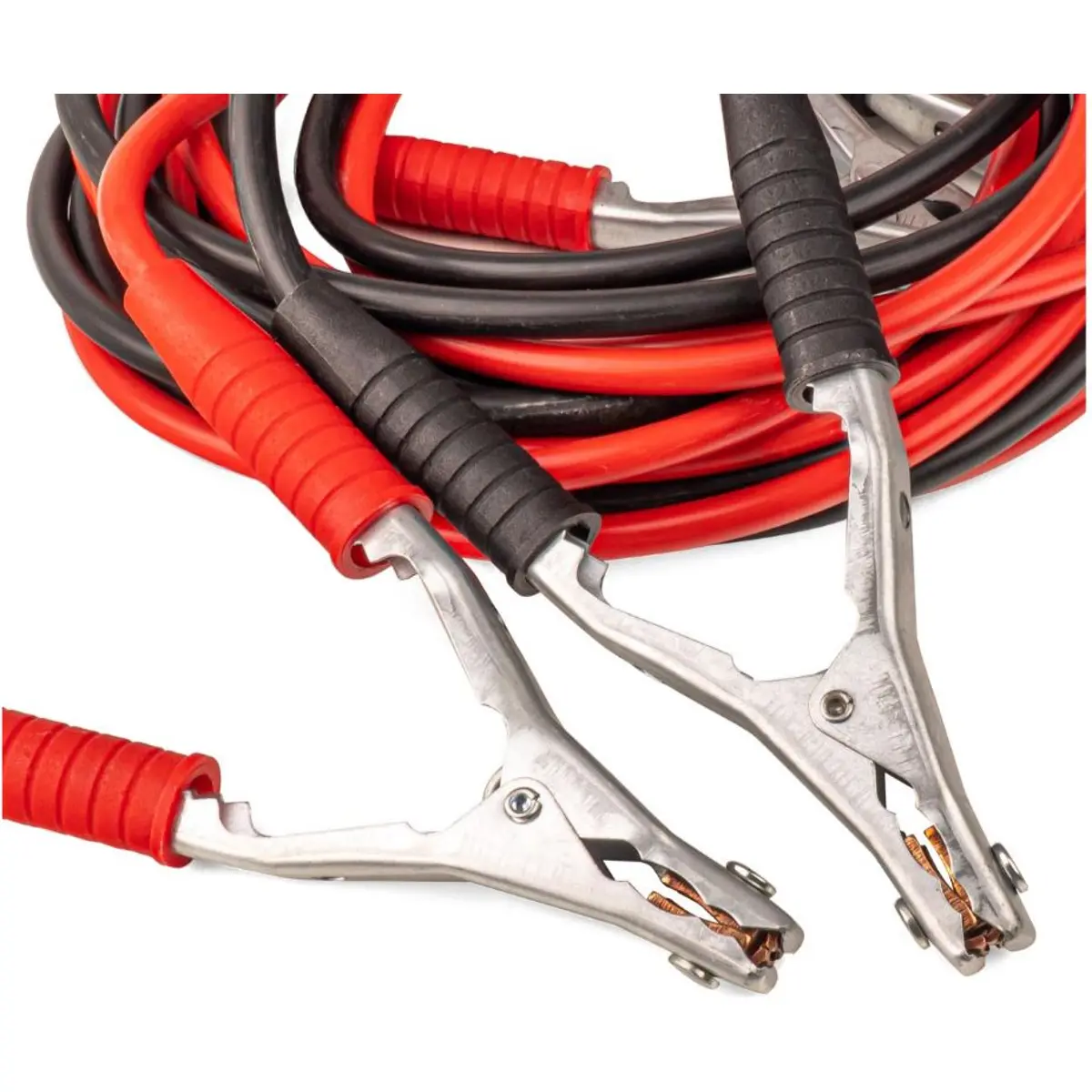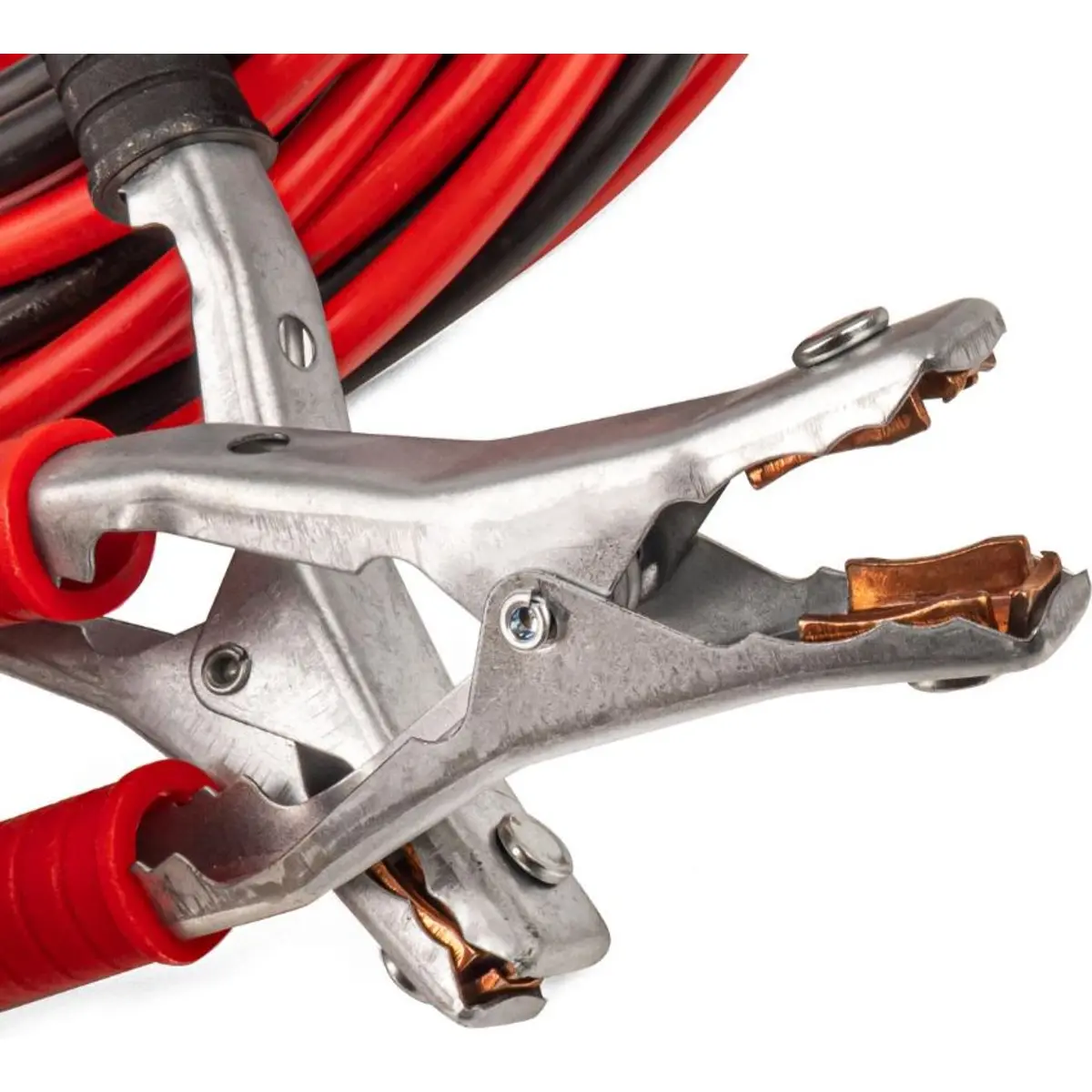 Cabos de arranque concebidos para utilização profissional, fabricados com condutores em cobre de 99,9% para garantir a máxima condutividade e perdas mínimas de tensão. As pinças possuem elementos totalmente condutores em cobre, assegurando um fluxo de corrente estável mesmo a temperaturas muito baixas. O isolamento é altamente resistente a óleos, baixas temperaturas e danos mecânicos. O comprimento de 6 metros facilita a ligação entre veículos em condições de terreno variadas.