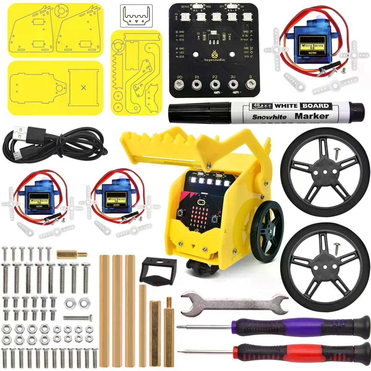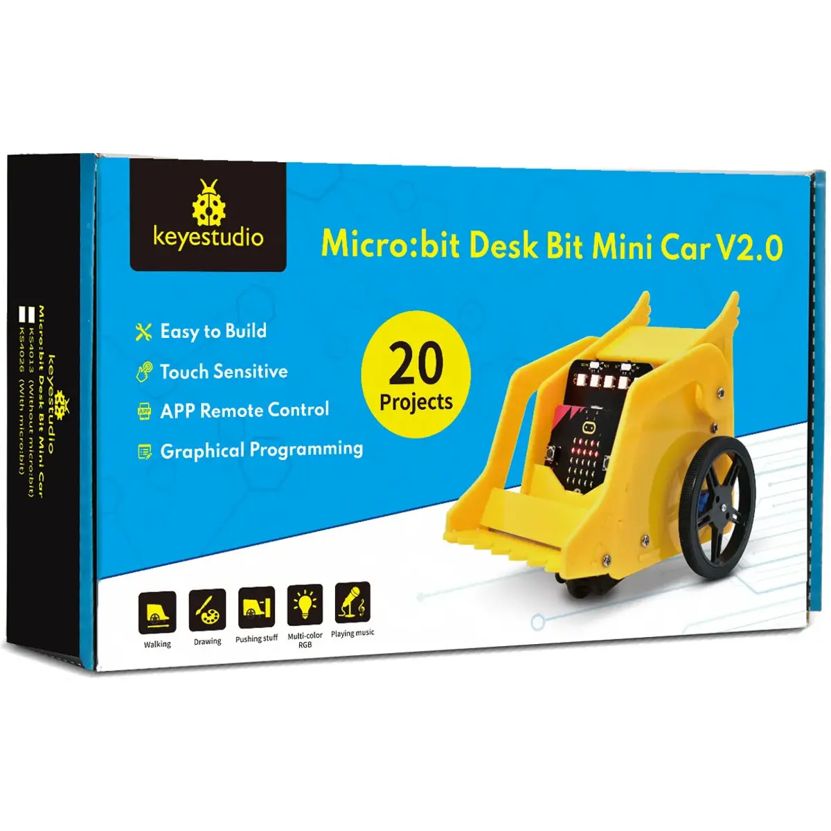 O Keyestudio Micro:bit Desk Bit Mini Car V2 (KS4041) é um kit educativo STEM concebido para aprendizagem prática de programação, robótica e eletrónica com base no micro:bit V2. Com um design compacto e apelativo, integra servomotores, placa de controlo dedicada e múltiplos sensores, permitindo a criação de projetos interativos de forma intuitiva e progressiva.