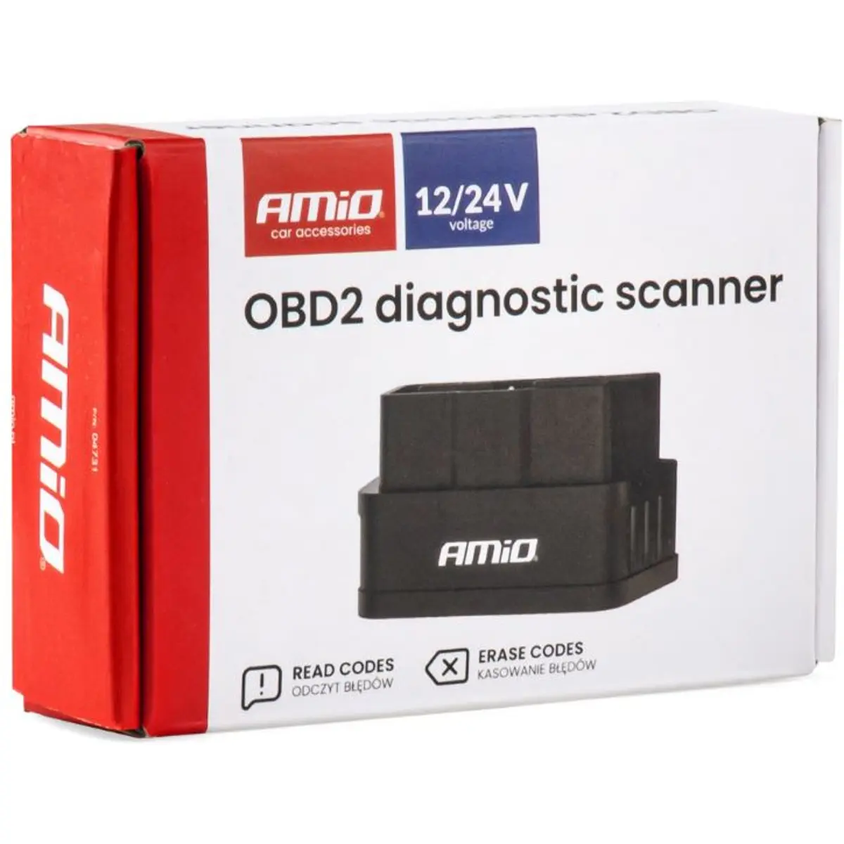 O scanner AMiO OBD2 BT PIC25K80 DC24K permite a realização de diagnósticos sem fios em veículos compatíveis com o padrão OBD2. Graças ao suporte a uma ampla gama de protocolos de comunicação, é uma ferramenta indispensável para oficinas, serviços móveis e utilizadores profissionais de diagnóstico automóvel.