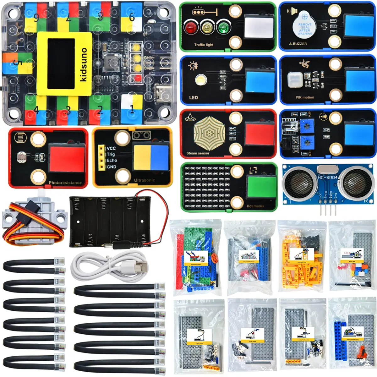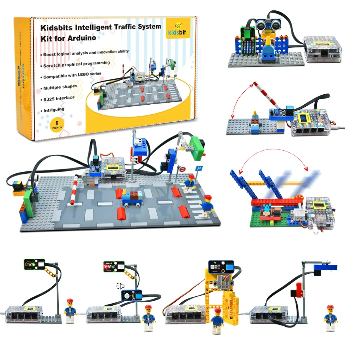 O Kidsbits Intelligent Traffic System Kit é um kit educativo STEM baseado em Arduino, compatível com peças LEGO®, concebido para introduzir crianças dos 6 aos 9 anos aos fundamentos da programação, eletrónica e lógica computacional. Através de módulos eletrónicos reais e construção modular, permite criar e compreender sistemas de tráfego inteligentes de forma prática e intuitiva.