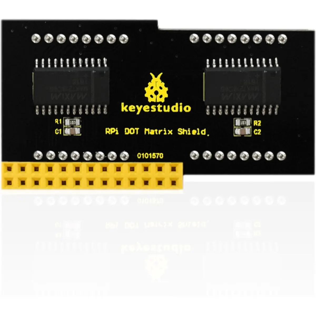 Este shield com matriz de LEDs 16×8 foi desenvolvido para facilitar a utilização de ecrãs de pontos com o Raspberry Pi, mesmo quando os pinos de I/O são limitados. Graças aos controladores dedicados MAX7219, é possível controlar 128 LEDs utilizando apenas a interface SPI.