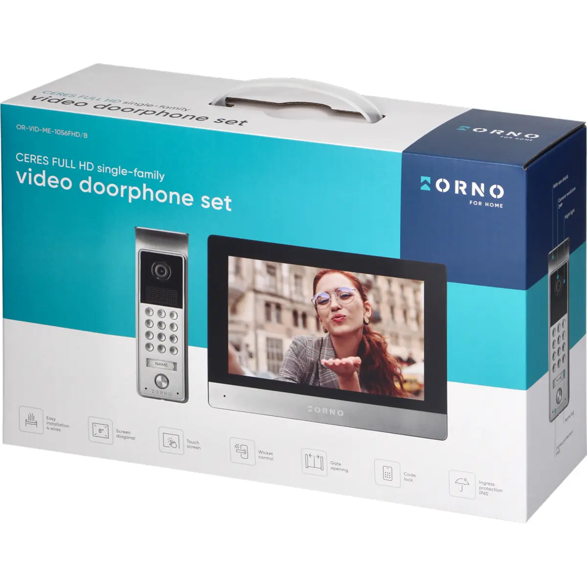 O ORNO CERES Full HD é um sistema de videoporteiro, de controlo de acesso e vigilância completo, concebido para casas unifamiliares, pequenas empresas e instituições que procuram segurança, facilidade de utilização e controlo do que acontece na entrada da propriedade. Este conjunto inclui um monitor interior com ecrã táctil de 8″ e uma câmara exterior com resolução Full HD. Desta forma, proporciona imagens nítidas e claras do visitante ou do espaço exterior, mesmo em situações de pouca luz graças à função dia/noite.