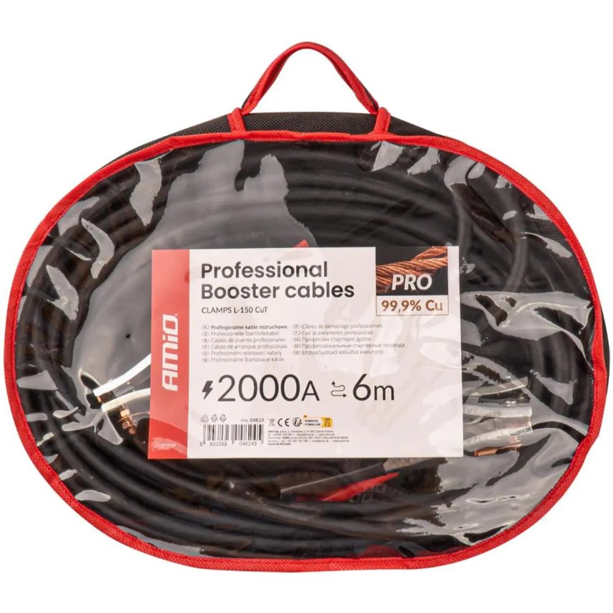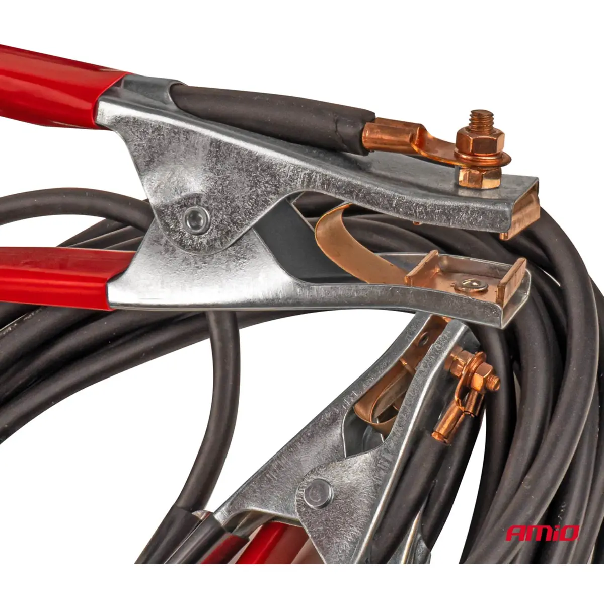 Cabos de arranque concebidos para utilização profissional, fabricados com condutores em cobre de 99,9% para garantir a máxima condutividade e perdas mínimas de tensão. As pinças possuem elementos totalmente condutores em cobre, assegurando um fluxo de corrente estável mesmo a temperaturas muito baixas. O isolamento é altamente resistente a óleos, baixas temperaturas e danos mecânicos. O comprimento de 6 metros facilita a ligação entre veículos em condições de terreno variadas.
