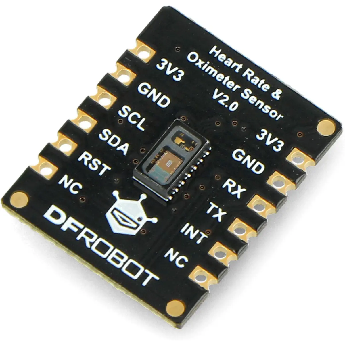 O Fermion MAX30102 (SEN0344) é um sensor compacto de frequência cardíaca e oximetria (SpO₂) baseado em PPG (fotopletismografia), que integra o chip Maxim MAX30102 e um microcontrolador com algoritmo incorporado. Graças ao processamento interno, o módulo fornece diretamente os valores de batimentos por minuto e saturação de oxigénio no sangue através de I2C ou UART, reduzindo o consumo de recursos do controlador principal e simplificando a integração em projetos de monitorização biométrica.