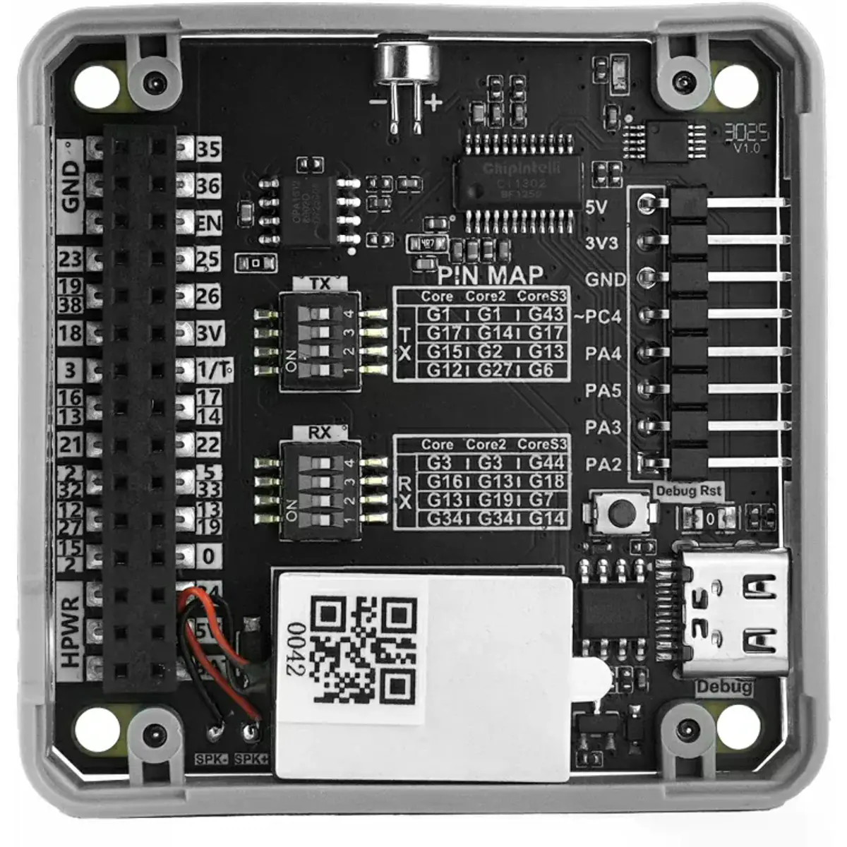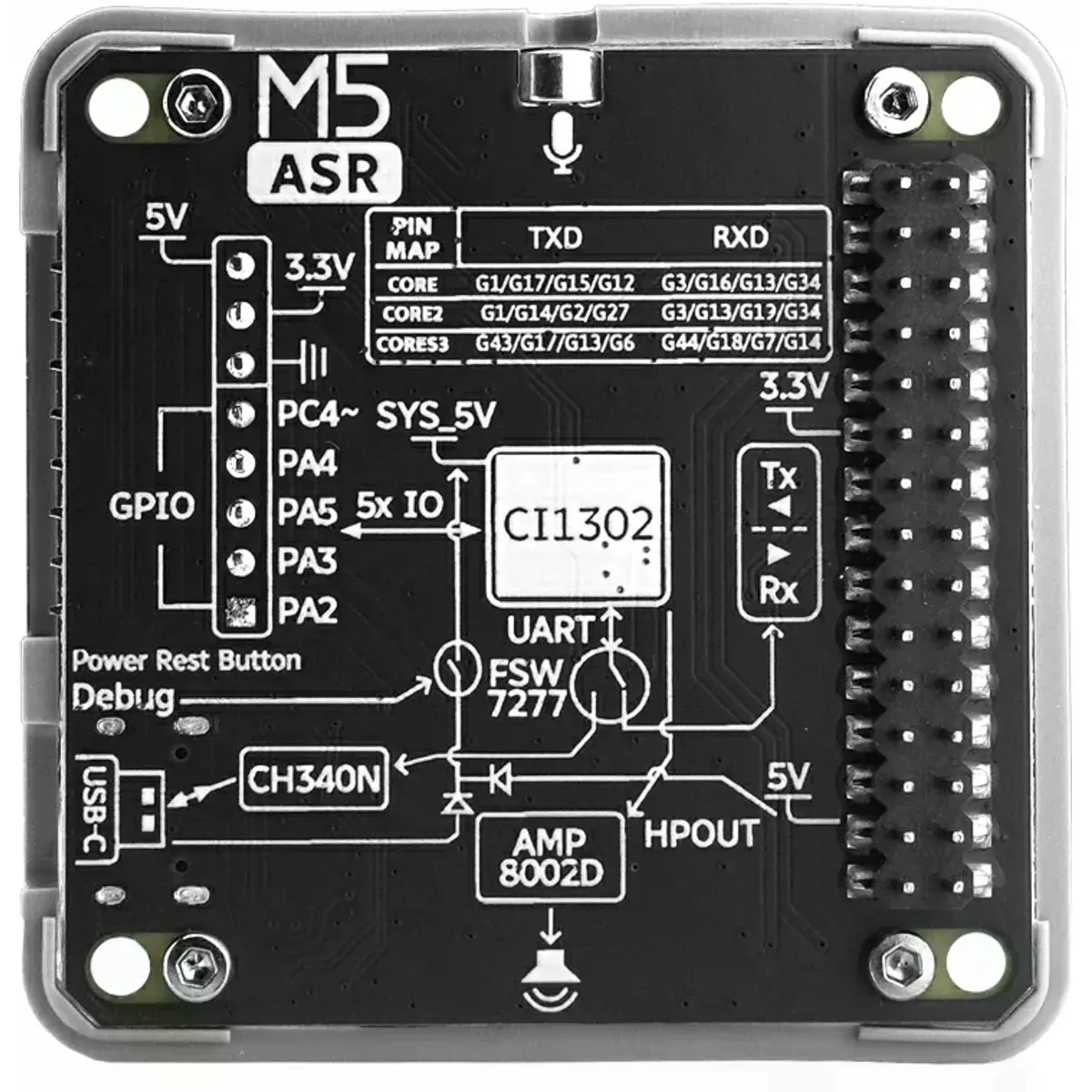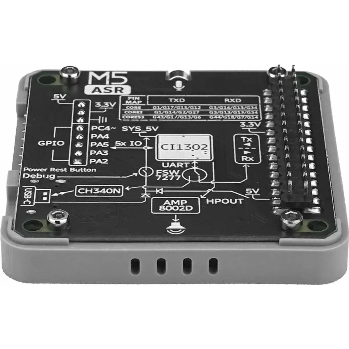 Integra um chip de voz CI1302, um microfone para captura sonora clara e um altifalante para feedback áudio de alta qualidade, sendo capaz de responder a comandos de voz e produzir respostas auditivas localmente.
