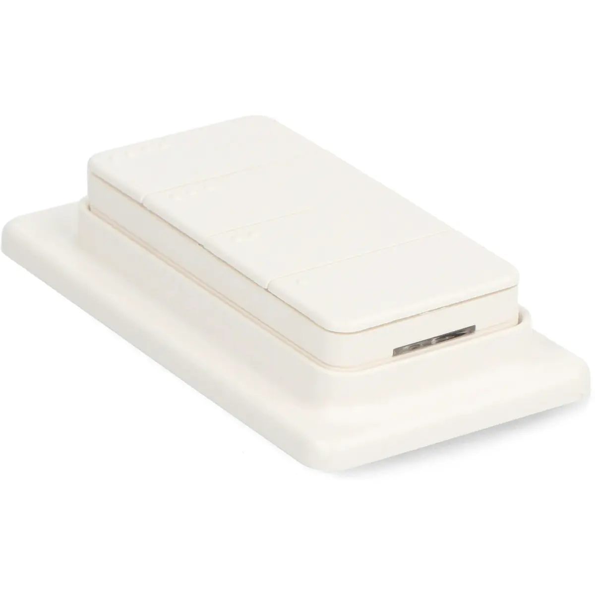 Shelly BLU RC Button 4 ZB é um comando remoto inteligente de 4 botões, com conectividade Bluetooth e Zigbee, pensado para controlar dispositivos e cenas com rapidez e segurança. Compacto, sem cablagem e com montagem versátil graças ao suporte magnético e ao adesivo 3M, permite automatizações com múltiplas combinações de cliques e autonomia até 2 anos.