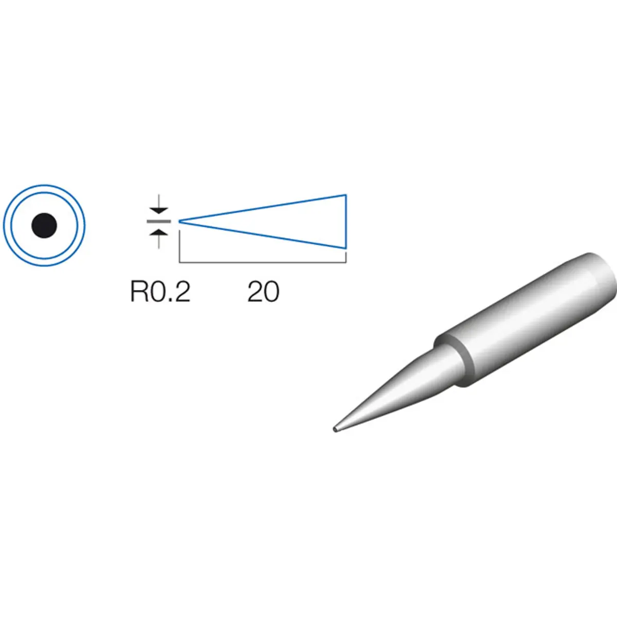 - Diâmetro do ponto de contato: Ø0,2 mm