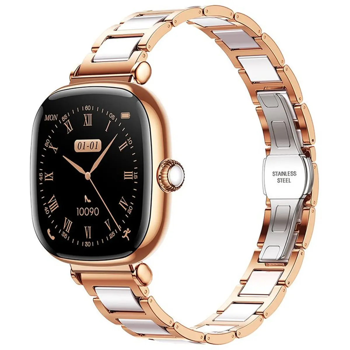 O smartwatch Joyroom JR-FS1 da série Starlight combina elegância e funcionalidades modernas, ideal para mulheres que valorizam estilo e tecnologia. Com caixa dourada, bracelete em cerâmica-metal e detalhes refinados, o relógio parece uma joia de luxo, mantendo todas as funções de monitorização de saúde, desporto e funcionalidades inteligentes.