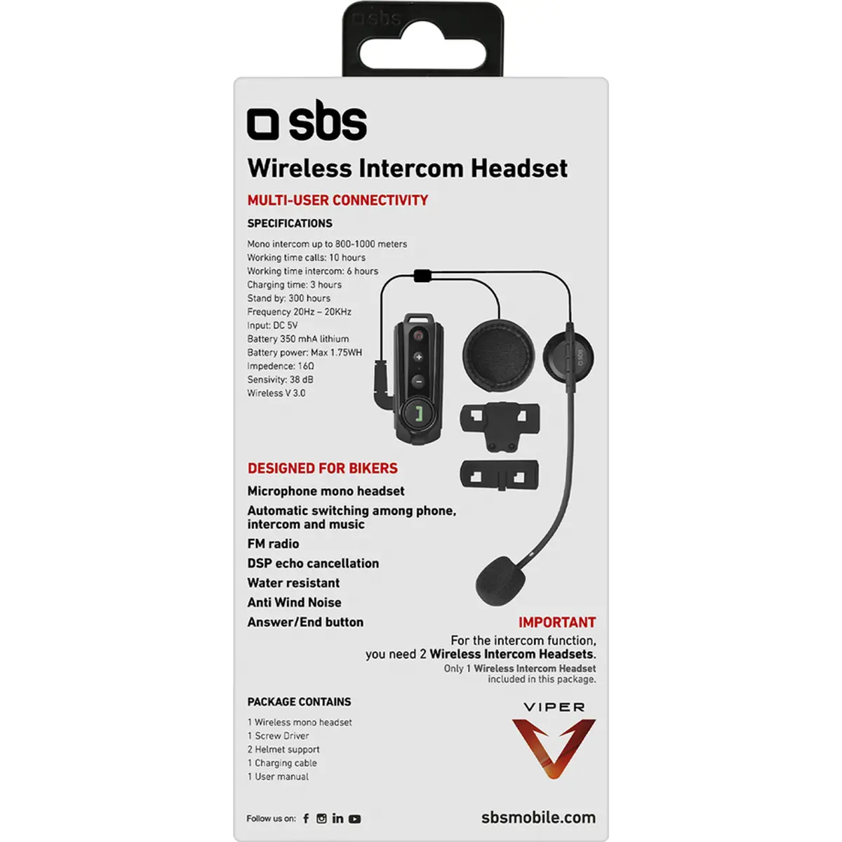 SBS - Auricular Mono sem Fios Intercom c/ Radio FM para capacetes - IPX4
