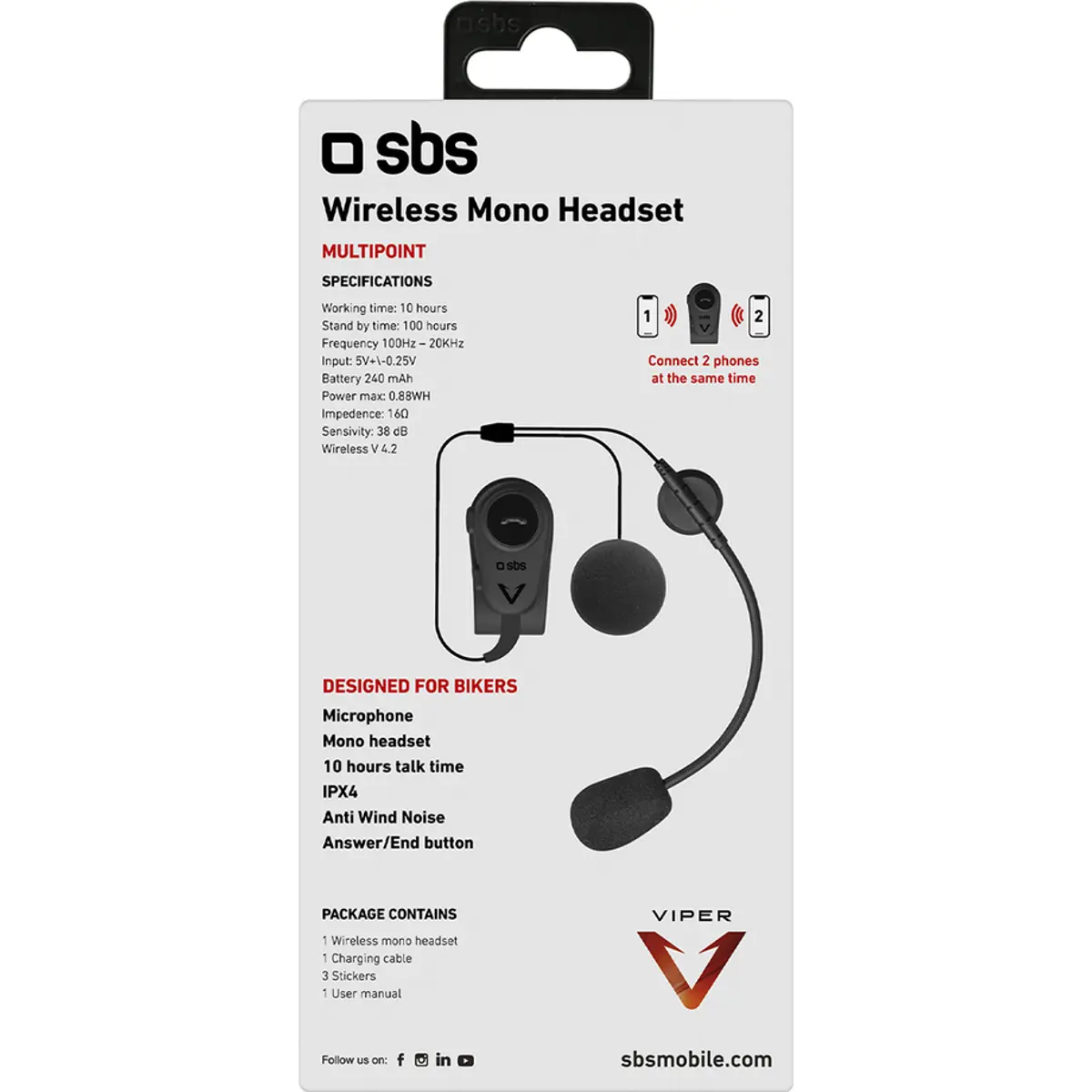 SBS - Auricular Mono sem Fios Bluetooth Multipoint para capacetes - IPX4