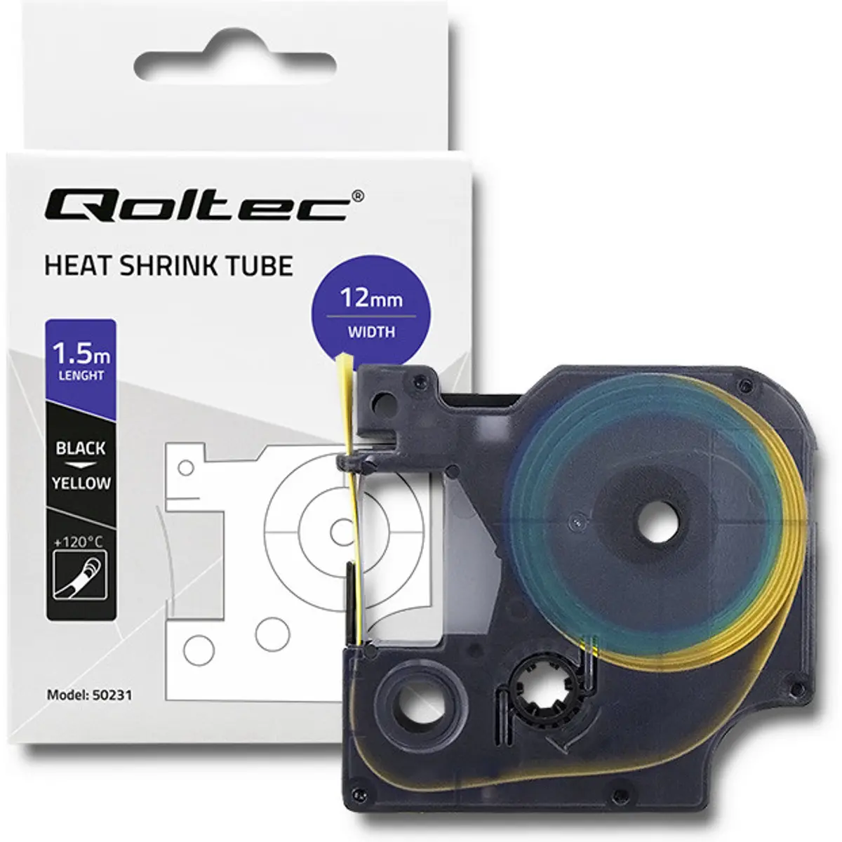 Qoltec - Tubo termoretrátil 3:1 D1 / RHINO p/ cabos 2.9..5.1mm [Preto sobre Amarelo] 12mm x 1.5m