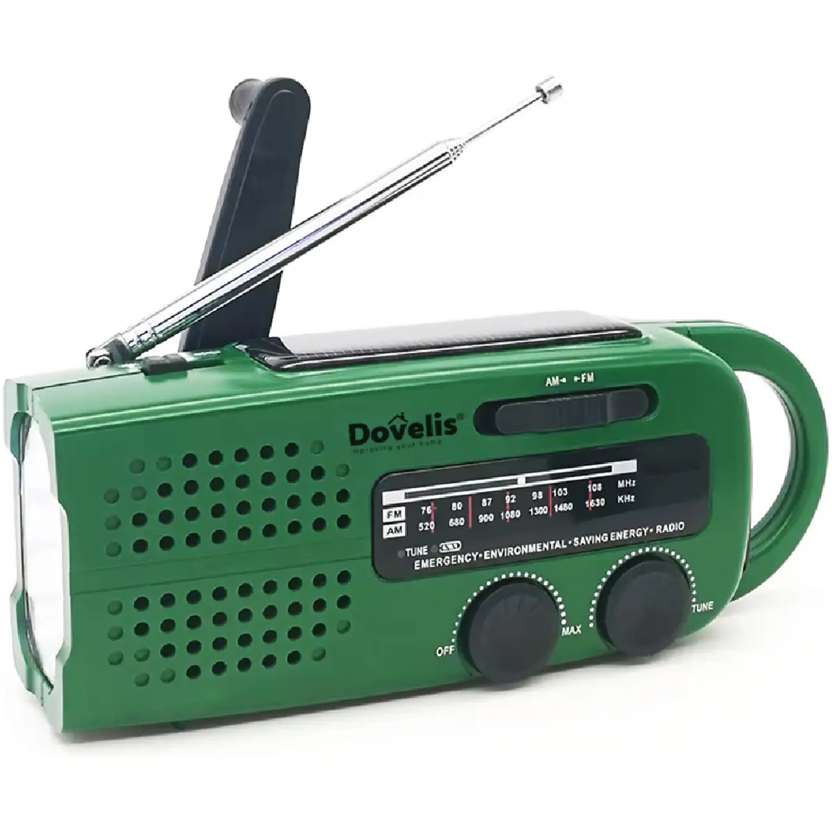 Este rádio portátil combina receção AM/FM com uma lanterna LED integrada, sendo uma solução prática e versátil para situações de emergência, atividades ao ar livre ou uso diário. Dispõe de vários métodos de alimentação, incluindo dínamo manual, carregamento solar, USB e pilhas AAA, garantindo funcionamento mesmo na ausência de energia elétrica. A bateria interna permite ainda a função powerbank para carregamento de pequenos dispositivos.