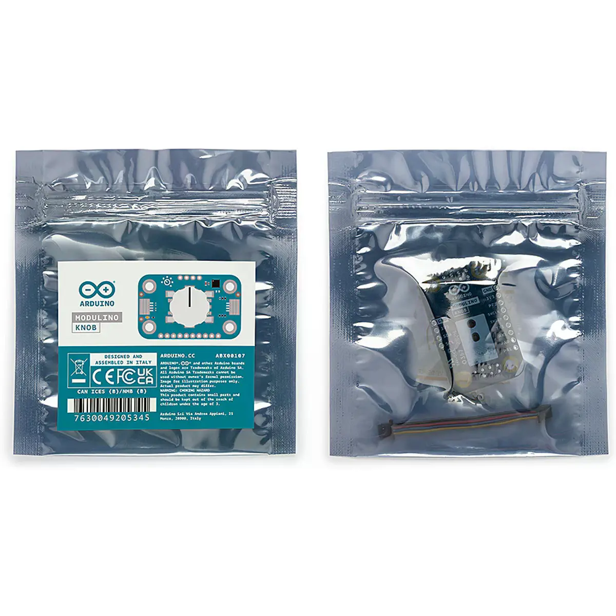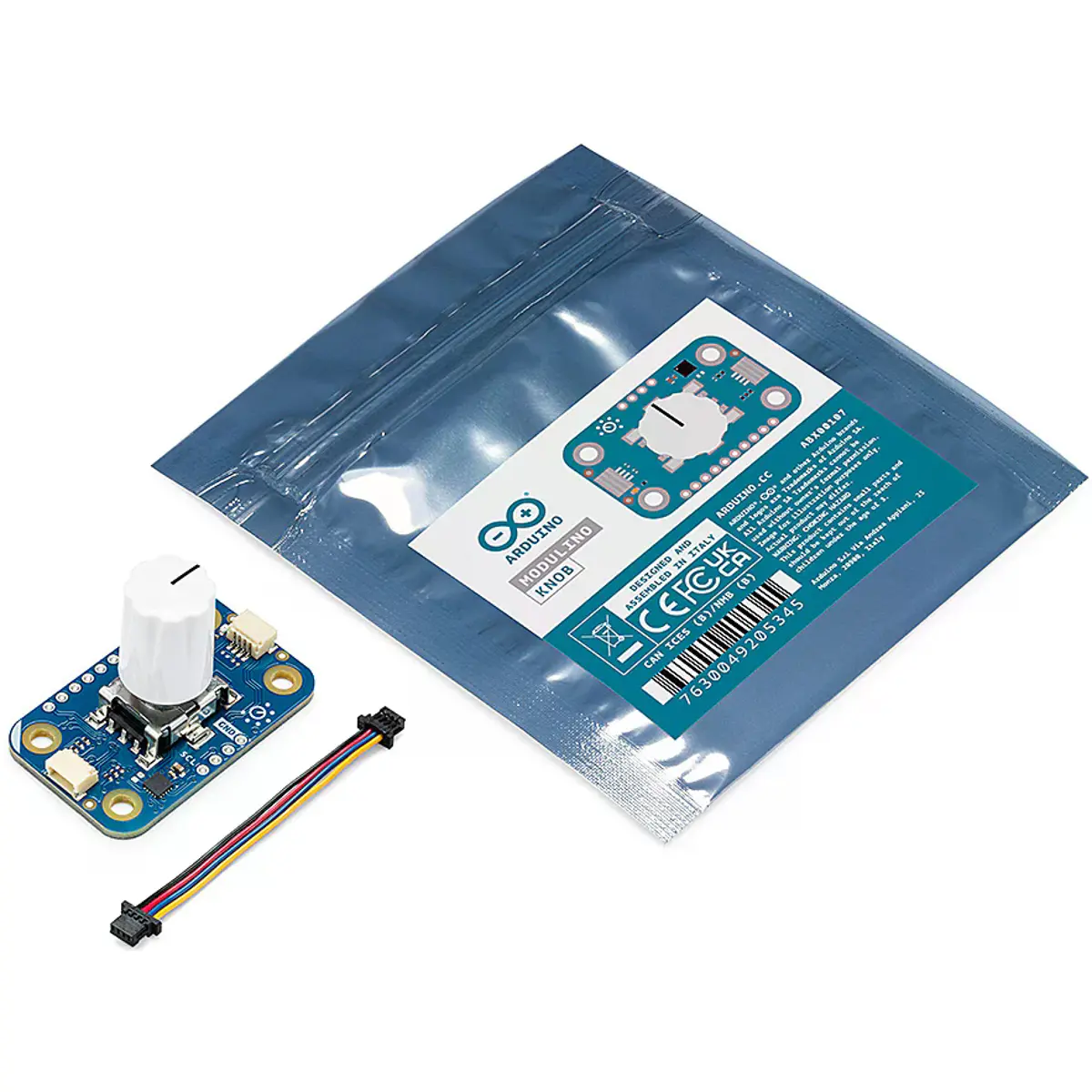 O Arduino® Modulino® Knob é um módulo de entrada rotativa concebido para adicionar controlo físico preciso a projetos eletrónicos e aplicações interativas. Equipado com um encoder rotativo de quadratura com função de botão integrado e um microcontrolador dedicado, permite ler facilmente rotações e pressões através de comunicação I²C.