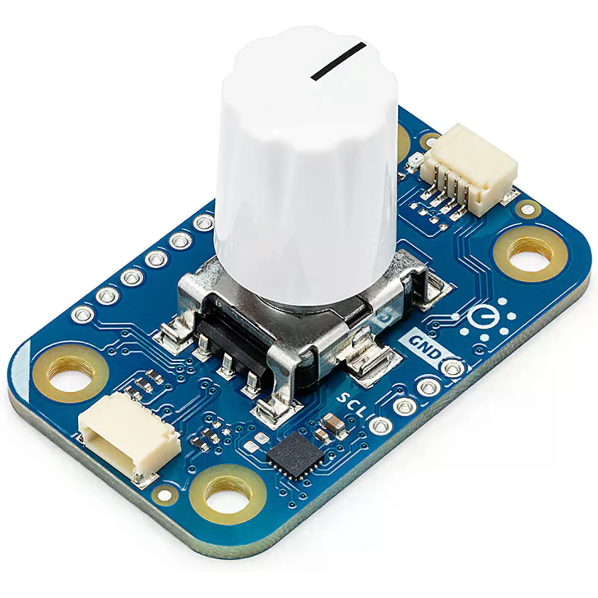 Ideal para interfaces de utilizador, controlo de parâmetros ou navegação em menus, este módulo integra-se facilmente em projetos Arduino®, sistemas IoT e aplicações educativas. A interface Qwiic simplifica a ligação e alimentação, permitindo uma integração rápida em sistemas baseados em microcontroladores de 3,3 V.