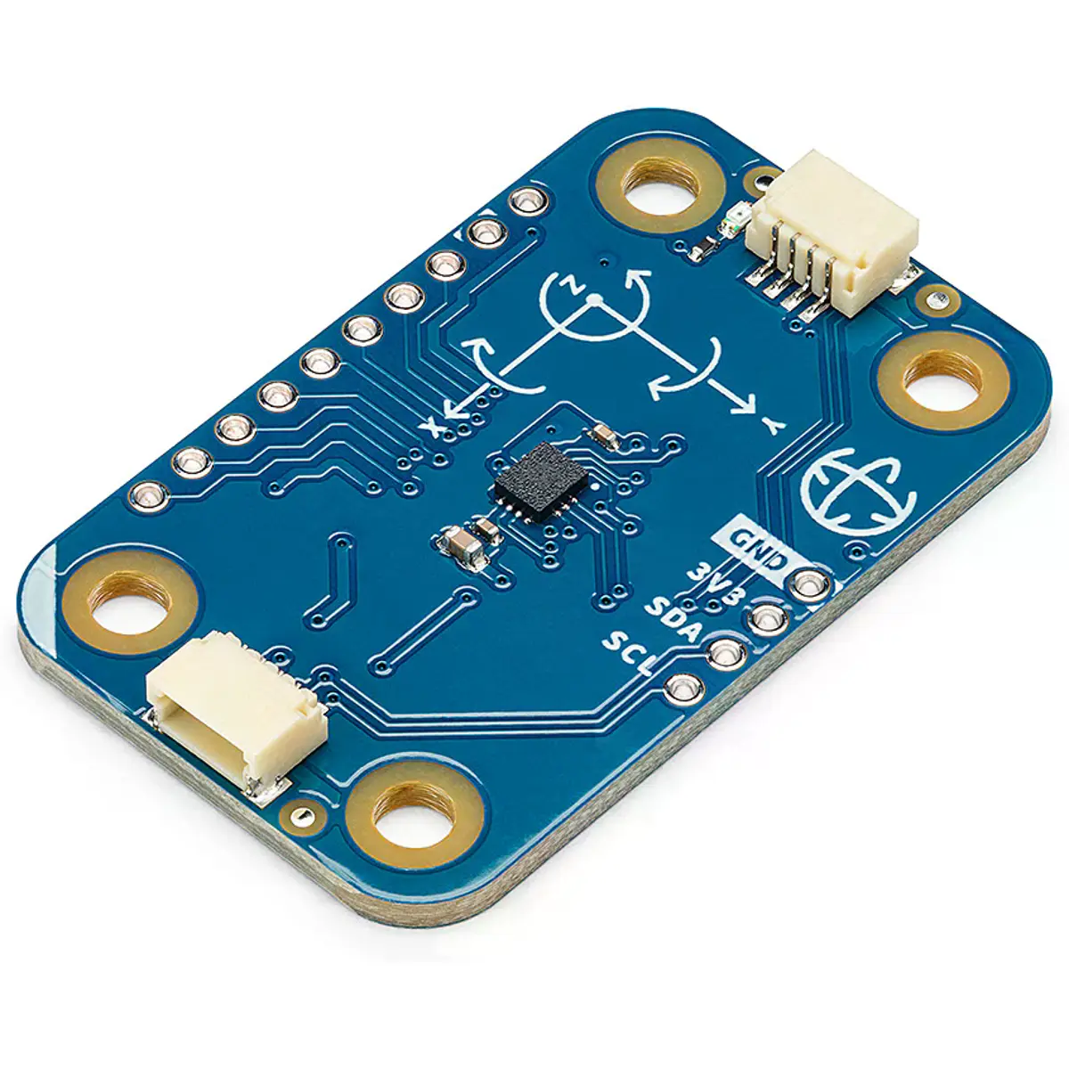Este módulo integra-se facilmente em sistemas Arduino através da interface I²C com conector Qwiic, permitindo uma ligação rápida e sem soldadura, sendo também possível utilizar comunicação SPI através de um cabeçalho adicional. Graças ao seu baixo consumo energético e elevada sensibilidade, é ideal para aplicações como reconhecimento de gestos, contadores de passos, monitorização de vibrações e controlo de orientação em projetos interativos ou dispositivos portáteis.