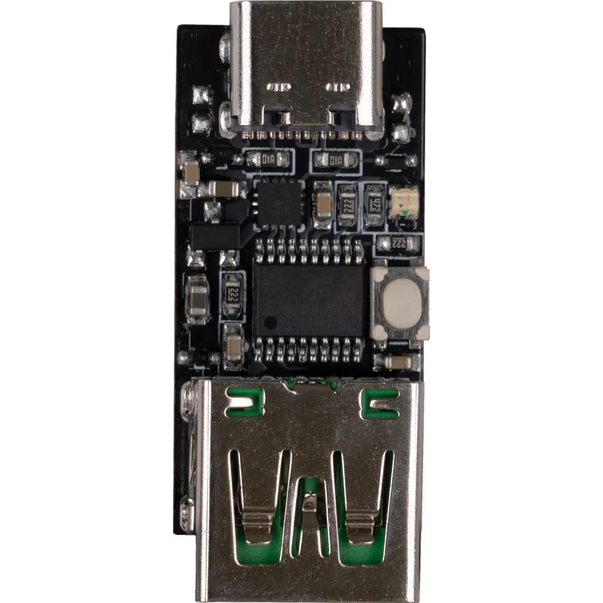 Este módulo USB-PD Trigger compacto permite negociar perfis de alimentação USB Power Delivery a partir de uma fonte USB-C compatível, disponibilizando tensões de saída fixas selecionáveis na sua saída USB-A. É indicado para aplicações técnicas e de desenvolvimento que requerem tensões superiores a 5 V diretamente numa interface USB.