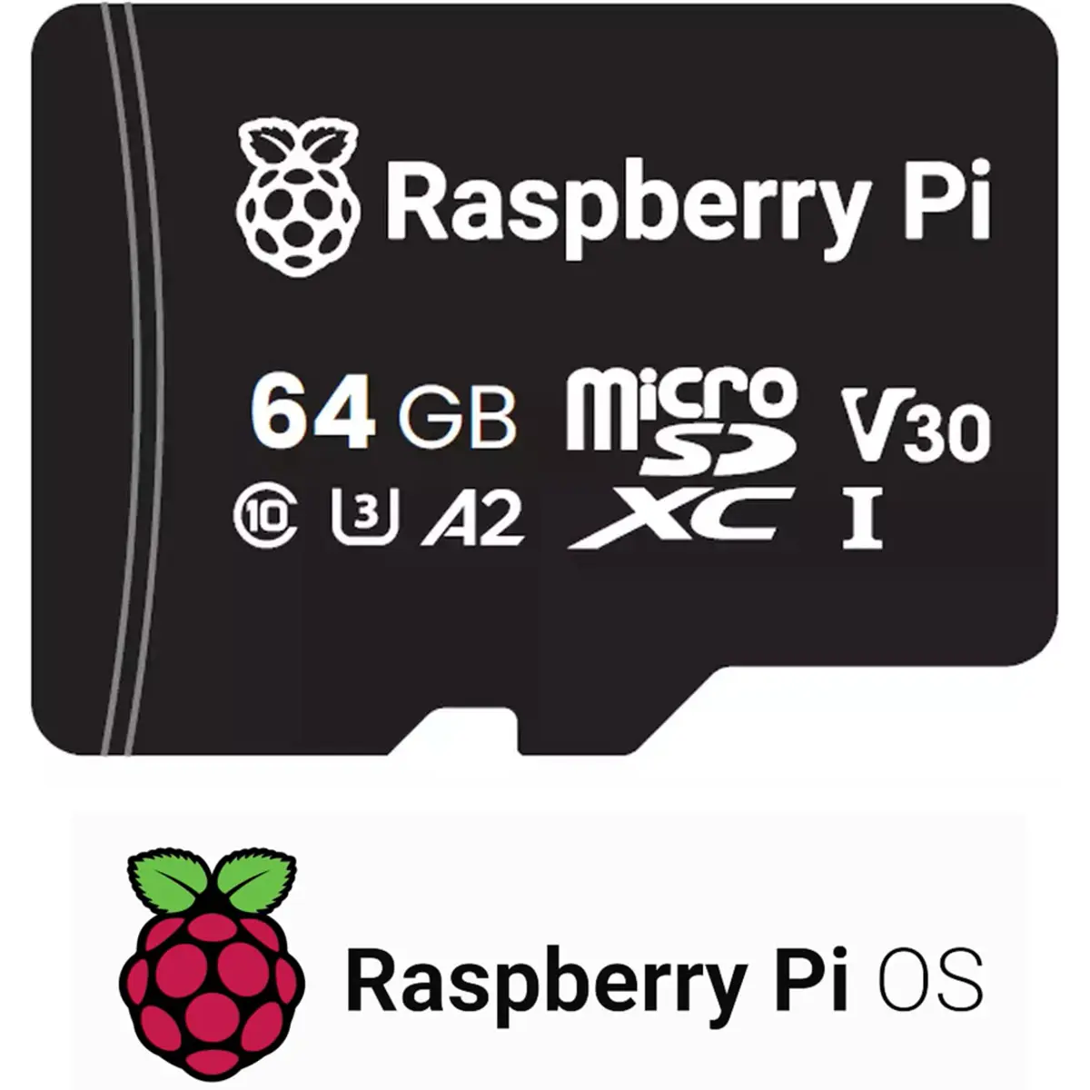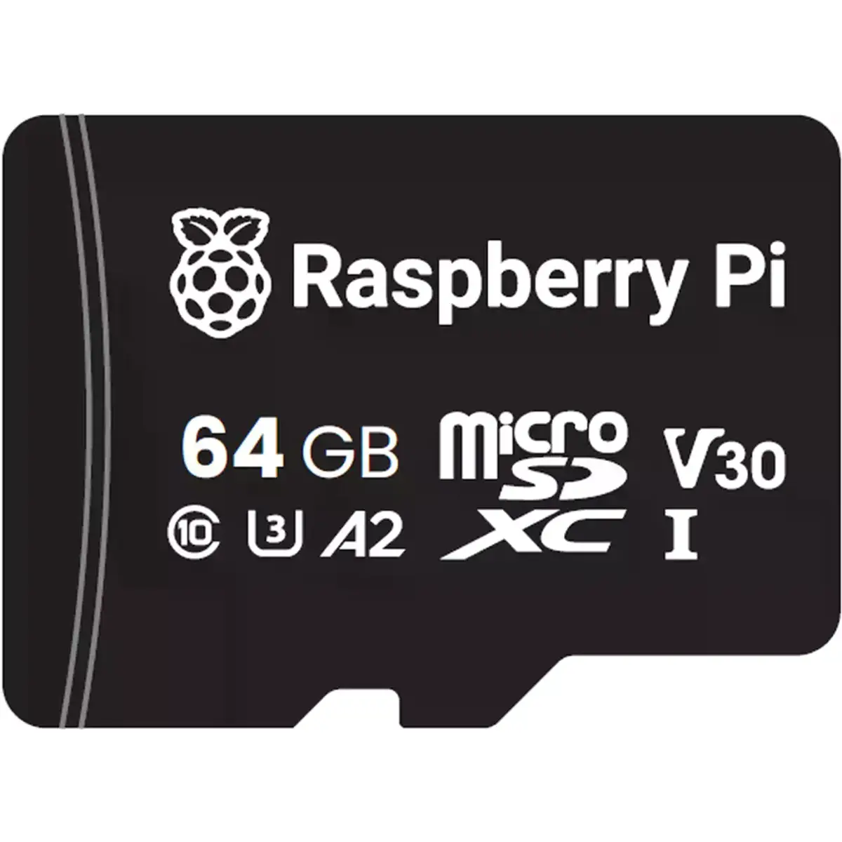 Cartão microSD oficial da Raspberry Pi com 64 GB de capacidade e classificação A2, ideal para arranque e armazenamento em computadores Raspberry Pi.