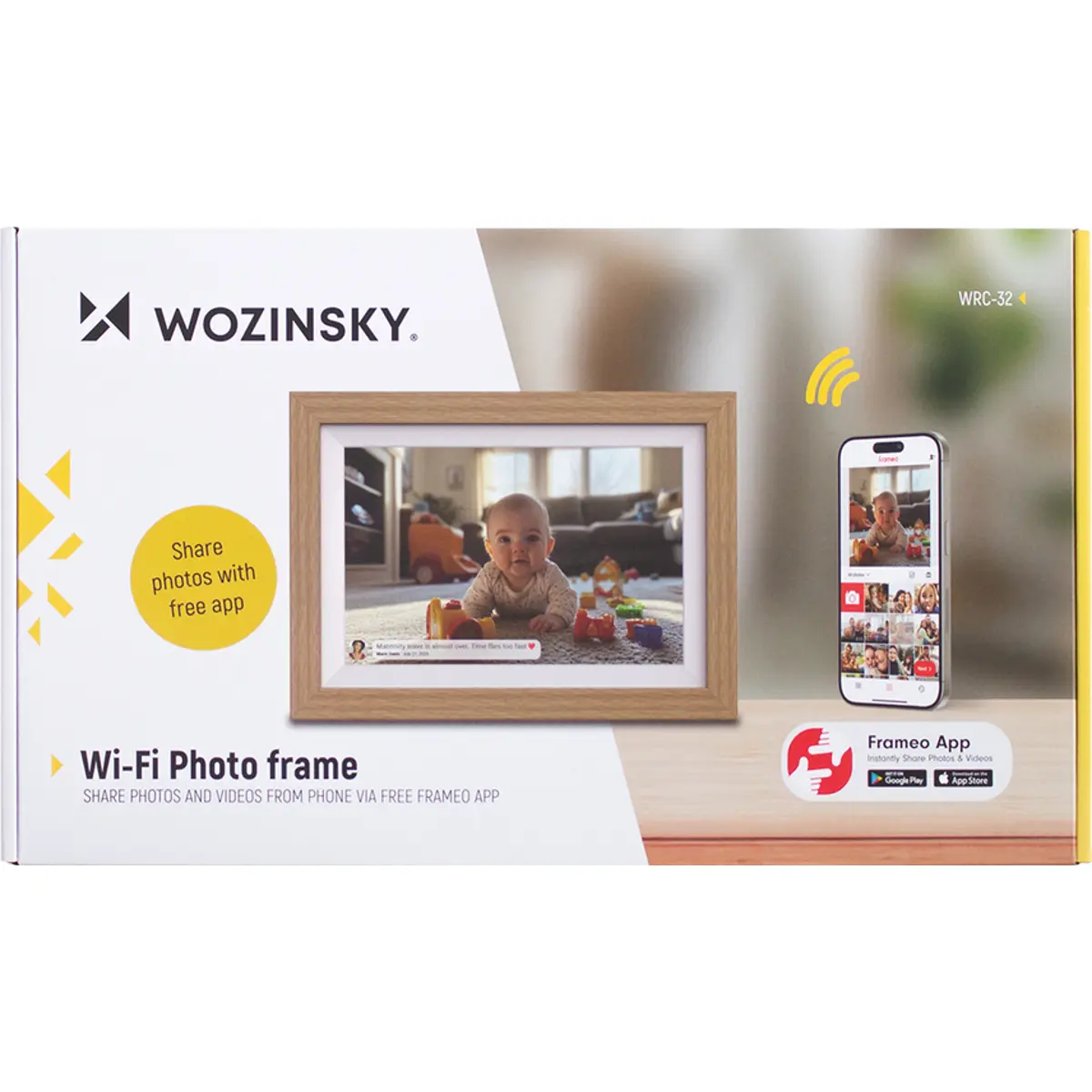 A moldura digital Wozinsky WRC-32 combina imagens nítidas, operação simples e partilha de fotos conveniente. O ecrã IPS com resolução de 1280×800 (16:10) apresenta fotos com cores naturais e amplos ângulos de visualização. O painel tátil permite navegar rapidamente e gerir a galeria, enquanto a memória interna de 32 GB armazena milhares de fotos. Com Wi-Fi e a app Frameo, pode enviar fotos do telemóvel sem cabos, mesmo à distância. A moldura em madeira castanho claro confere elegância sem tornar o dispositivo volumoso. Uma forma prática de reviver momentos importantes em casa, diariamente.