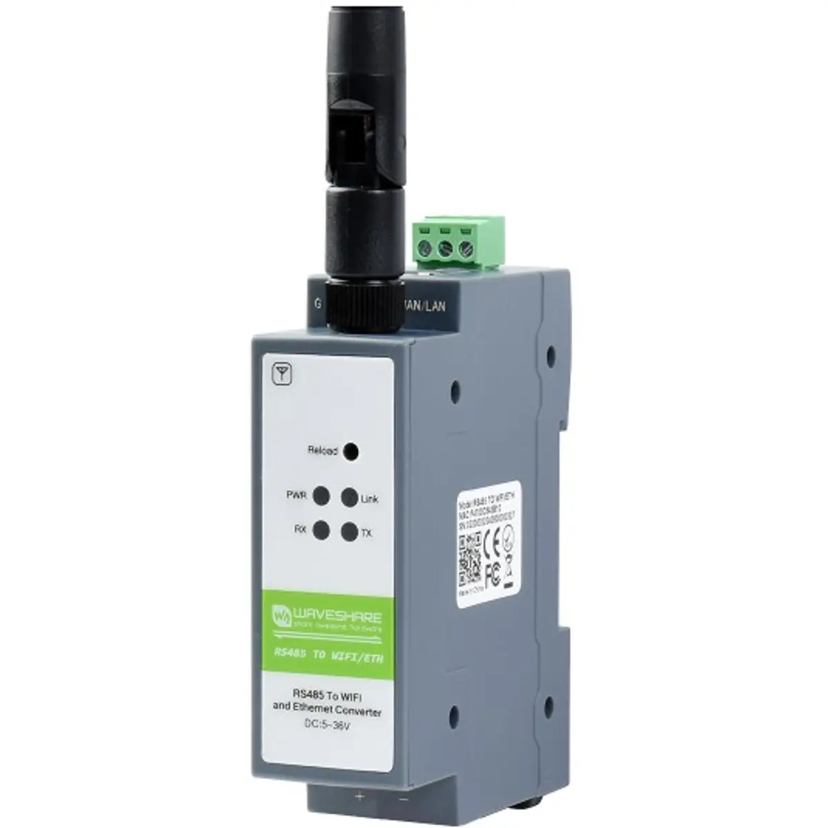 Waveshare RS485 TO WIFI/ETH - Conversor Serial RS485 <-> WIFI / Ethernet 10/100Mbps c/ Modbus e MQTT - p/ calha DIN