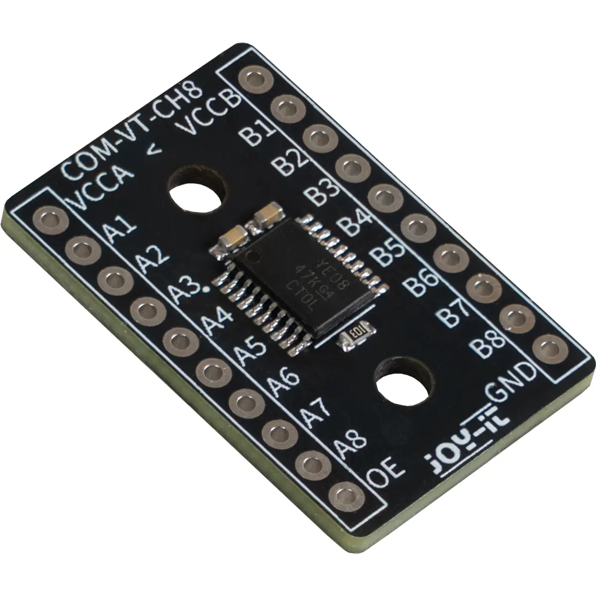 O COM-VT-CH8 é um Level Shifter (conversor de nível lógico) bidirecional, de 8 canais concebido para facilitar a comunicação entre sistemas digitais com diferentes tensões de funcionamento. Graças à deteção automática de direção, permite a troca de sinais em ambos os sentidos sem necessidade de pinos de controlo adicionais, tornando a integração simples, fiável e transparente.