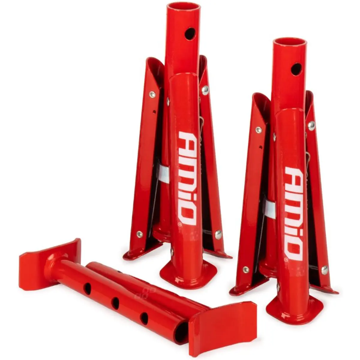 O conjunto de preguiças dobráveis concebido para levantar e sustentar veículos com peso bruto até 3 toneladas, oferecendo estabilidade e segurança durante operações de manutenção ou inspeção. O seu design dobrável permite fácil transporte e arrumação, enquanto o ajuste de altura entre 290 e 408 mm garante versatilidade para diferentes tipos de veículos. Robusto e durável, este conjunto combina praticidade e fiabilidade, sendo uma escolha segura para oficinas ou trabalhos em campo.