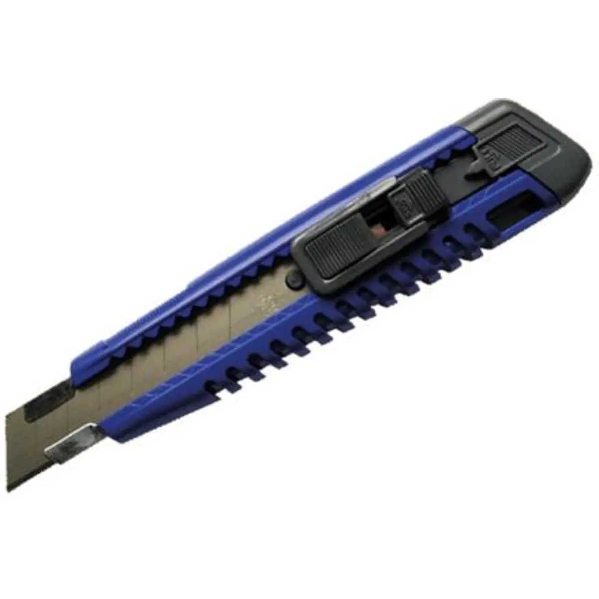 Faca de lâmina retráctil profissional compatível com lâminas de 18mm, indicado para cortes exigentes em materiais rígidos. Adequado para destros e canhotos, facilita a troca de lâmina e é robusto o suficiente para uso com luvas.