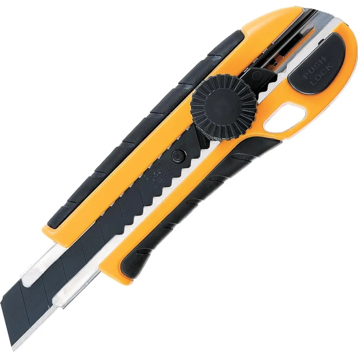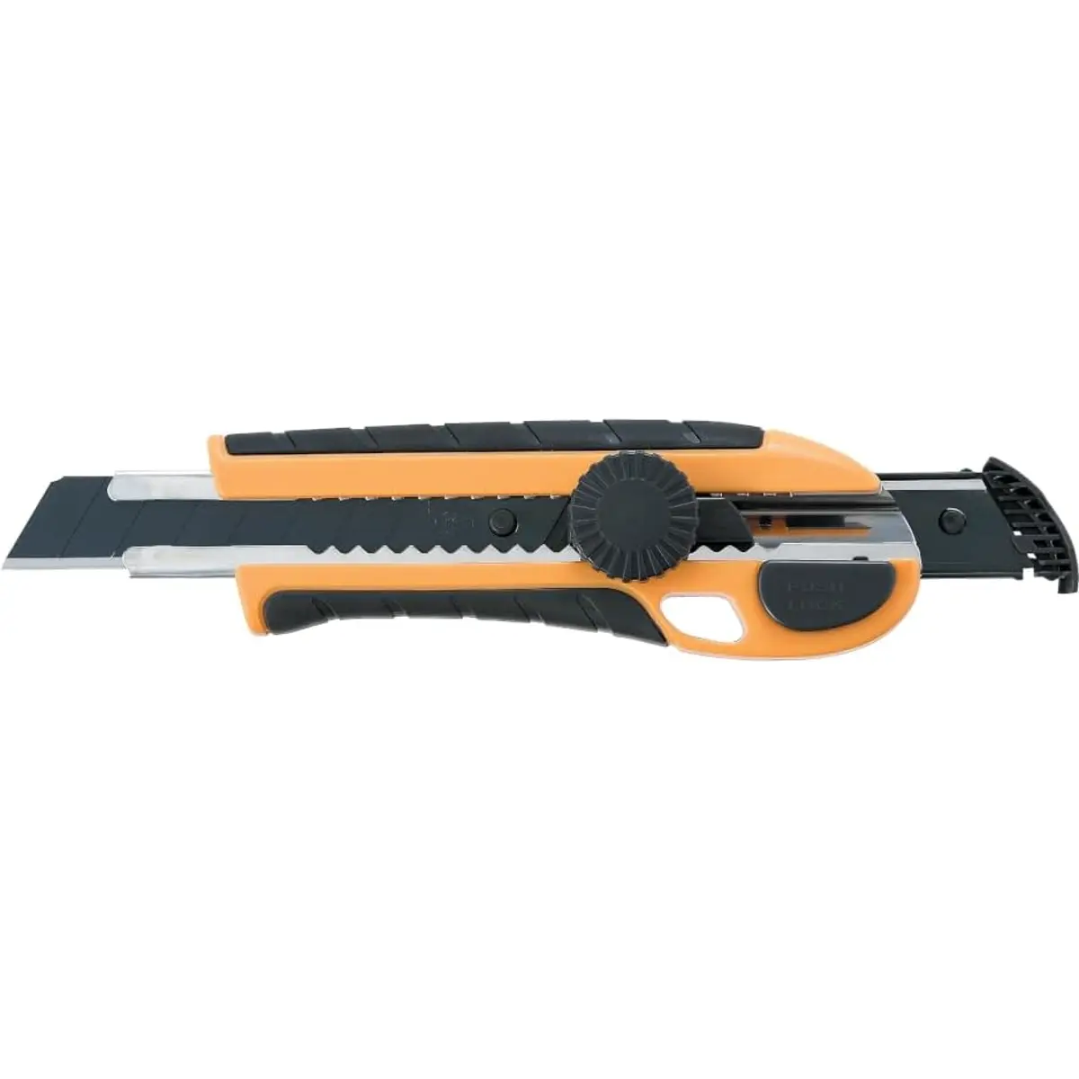 - Faca robusta com corpo em ABS e canal de lâmina em aço inox