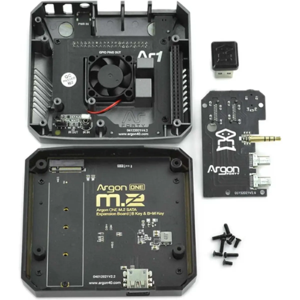Argon 40 ARGON-ONE-M.2 - Caixa de alumínio para Raspberry Pi 4B c/ ventoinha e suporte para SSD M.2 SATA