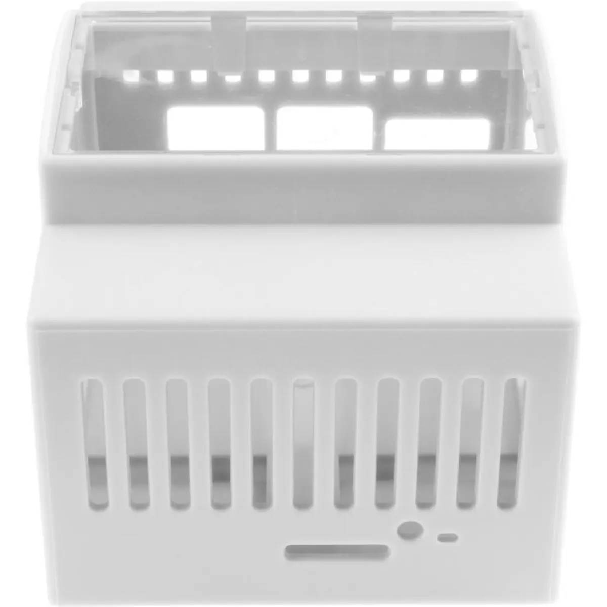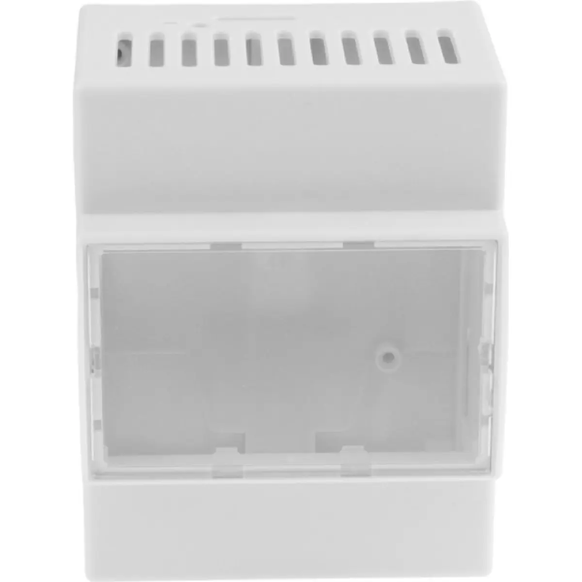 Inclui uma janela superior transparente que permite verificar visualmente o estado da placa sem abrir a caixa, e um sistema de montagem simples e seguro na calha DIN, ideal para painéis elétricos, instalações industriais e projetos de automação.