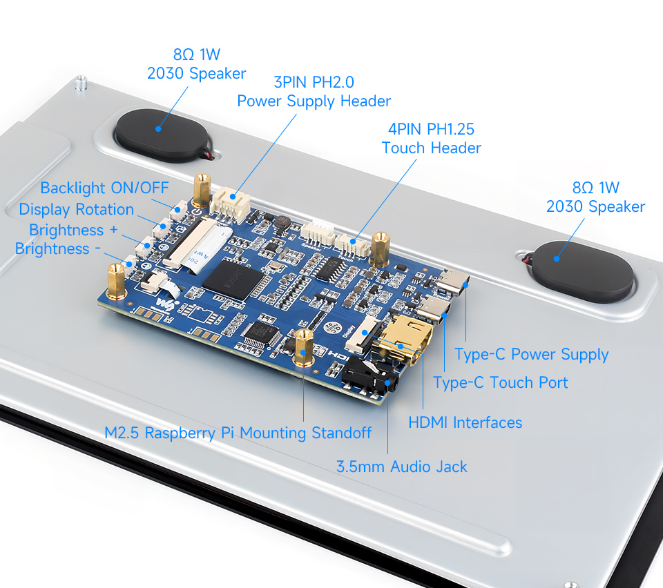 Waveshare 28882 - Ecrã Tátil IPS 10.1'' (1920×1200) HDMI USB-C c/ OSD e Altifalantes Integrados p/ SBC/PC