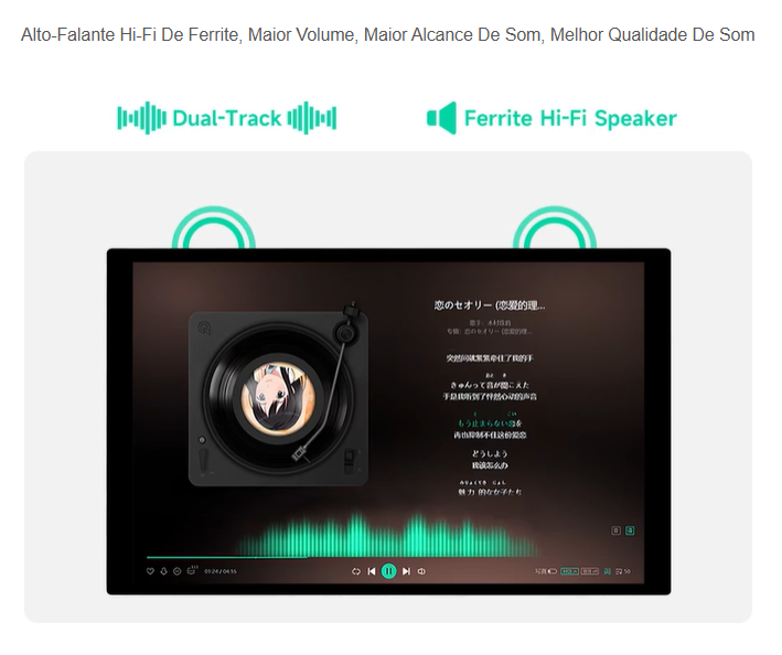 - Altifalantes: integrados (Hi-Fi Speaker)