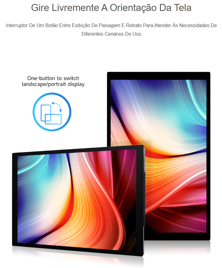 ✅ Comutação por botão entre paisagem/retrato para adaptar a orientação do ecrã.