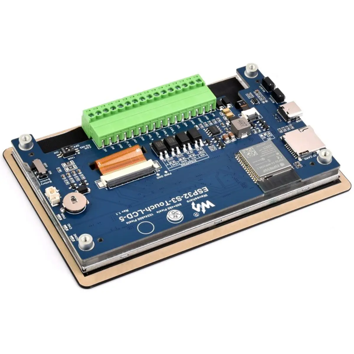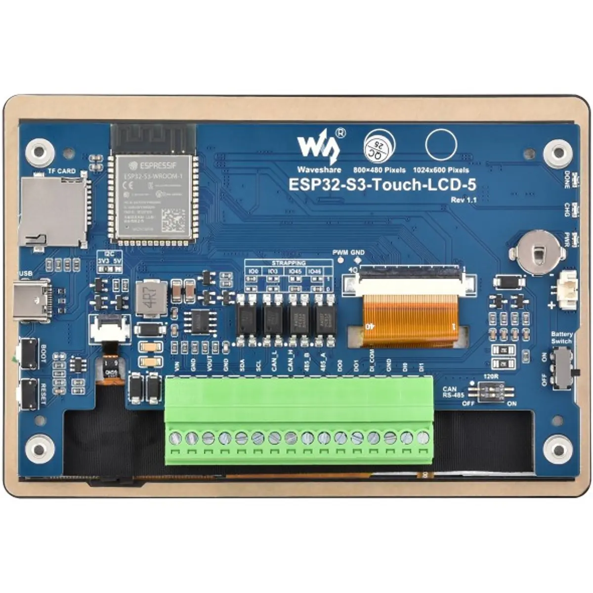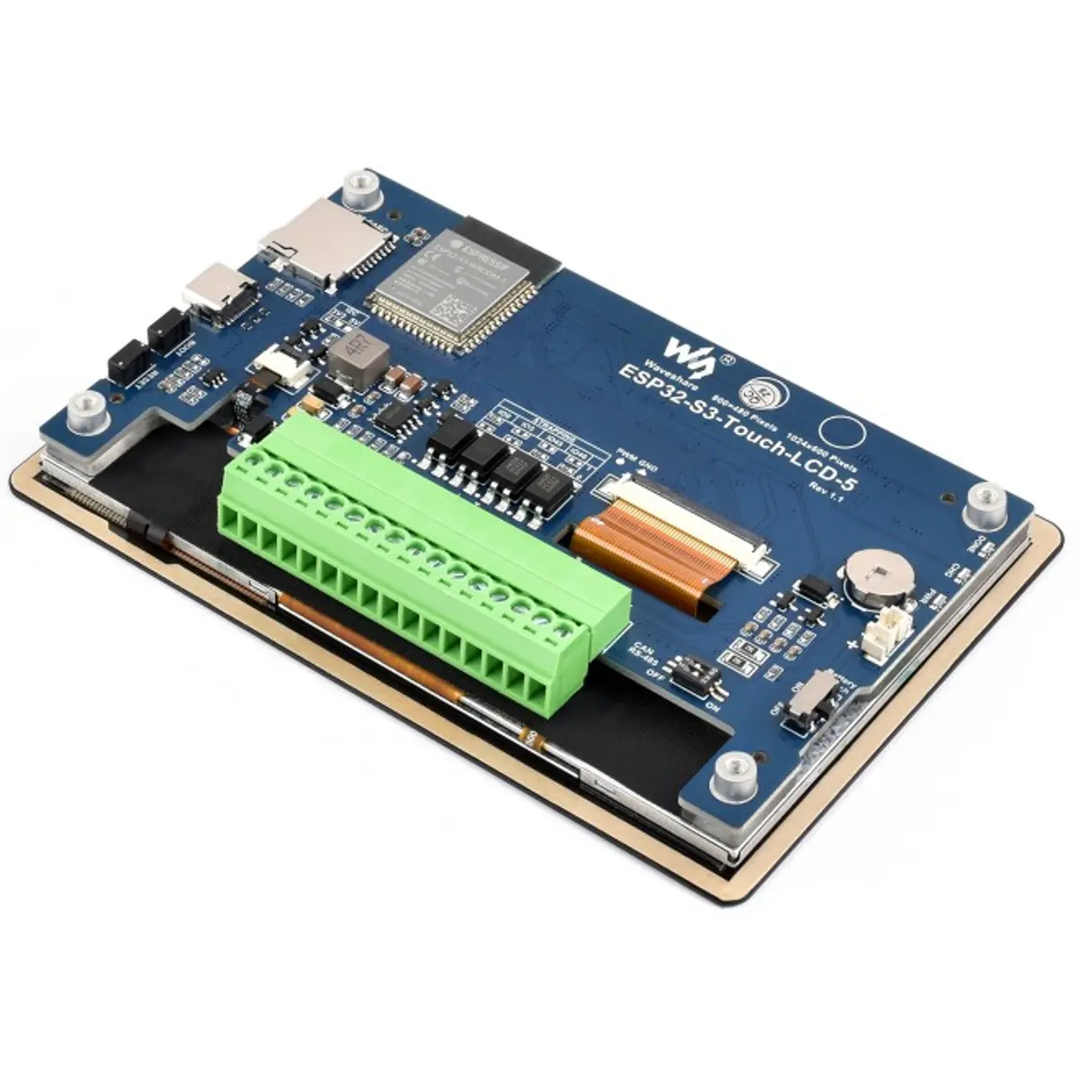 A Waveshare ESP32-S3-Touch-LCD-5B é uma placa de desenvolvimento tudo-em-um que integra um microcontrolador ESP32-S3 com um ecrã IPS de 5 polegadas com toque capacitivo. Concebida para aplicações IoT, interfaces homem-máquina (HMI) e sistemas de controlo industrial, combina elevado desempenho, conectividade sem fios e múltiplas interfaces industriais num único módulo compacto.
