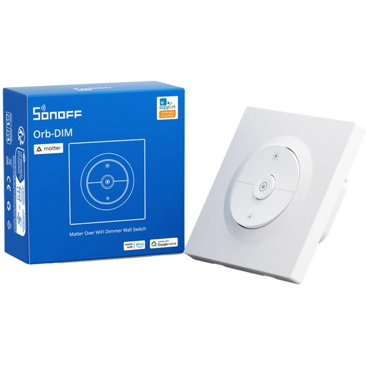 O SONOFF Orb-DIM (MINI-DIM-E) é um interruptor de parede dimmer inteligente com tecnologia Matter over Wi-Fi, concebido para modernizar sistemas de iluminação tradicionais com controlo preciso e integração total em ambientes de casa inteligente. Compatível com múltiplas plataformas e com ampla gama de cargas reguláveis, oferece uma experiência de dimerização suave, segura e energeticamente eficiente.