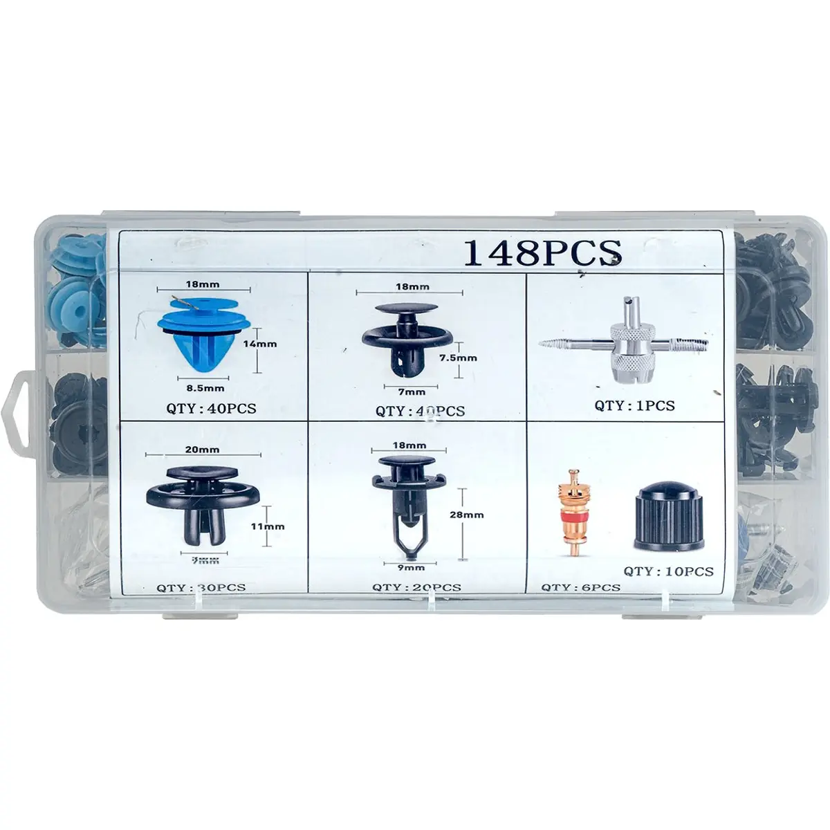 Kit de molas de fixação em plástico, válvulas e ferramentas (148 pcs) Kit de molas de fixação em plástico, válvulas e ferramentas (148 pcs) Kit de molas de fixação em plástico, válvulas e ferramentas (148 pcs) Kit de molas de fixação em plástico, válvulas e ferramentas (148 pcs) Kit de molas de fixação em plástico, válvulas e ferramentas (148 pcs) Kit de molas de fixação em plástico, válvulas e ferramentas (148 pcs)