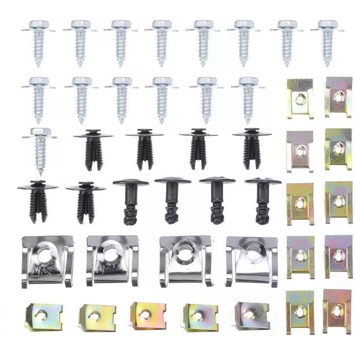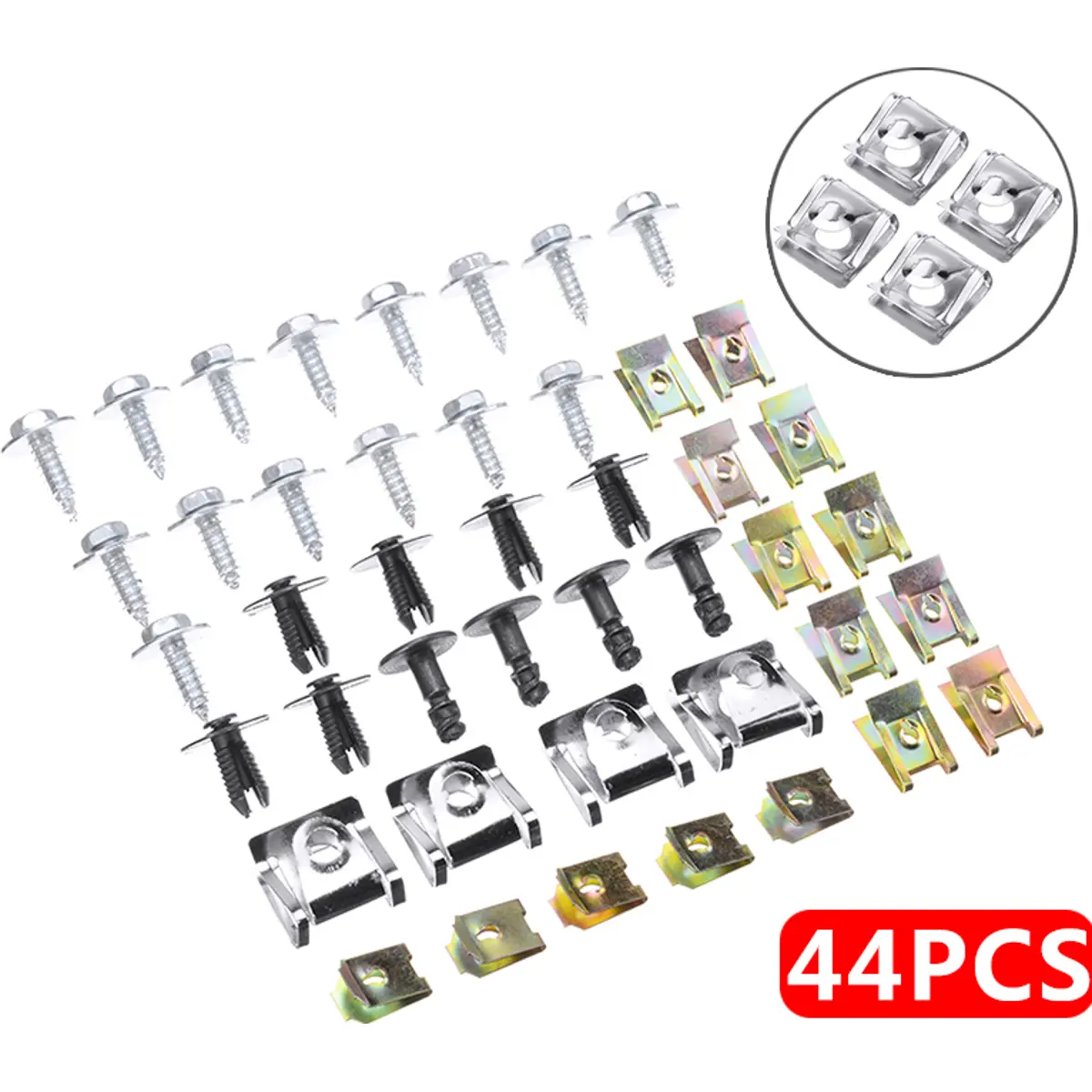Conjunto de clip metálicos em U + parafusos de fixação universal para automóvel (44 pcs)
