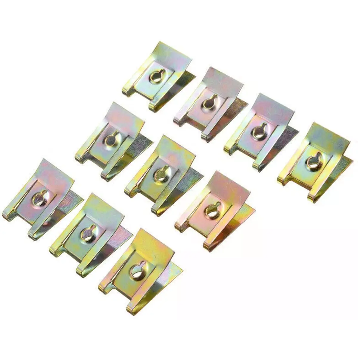 - Clips metálicos em U adequados para fixação de painéis e guarnições automóveis
