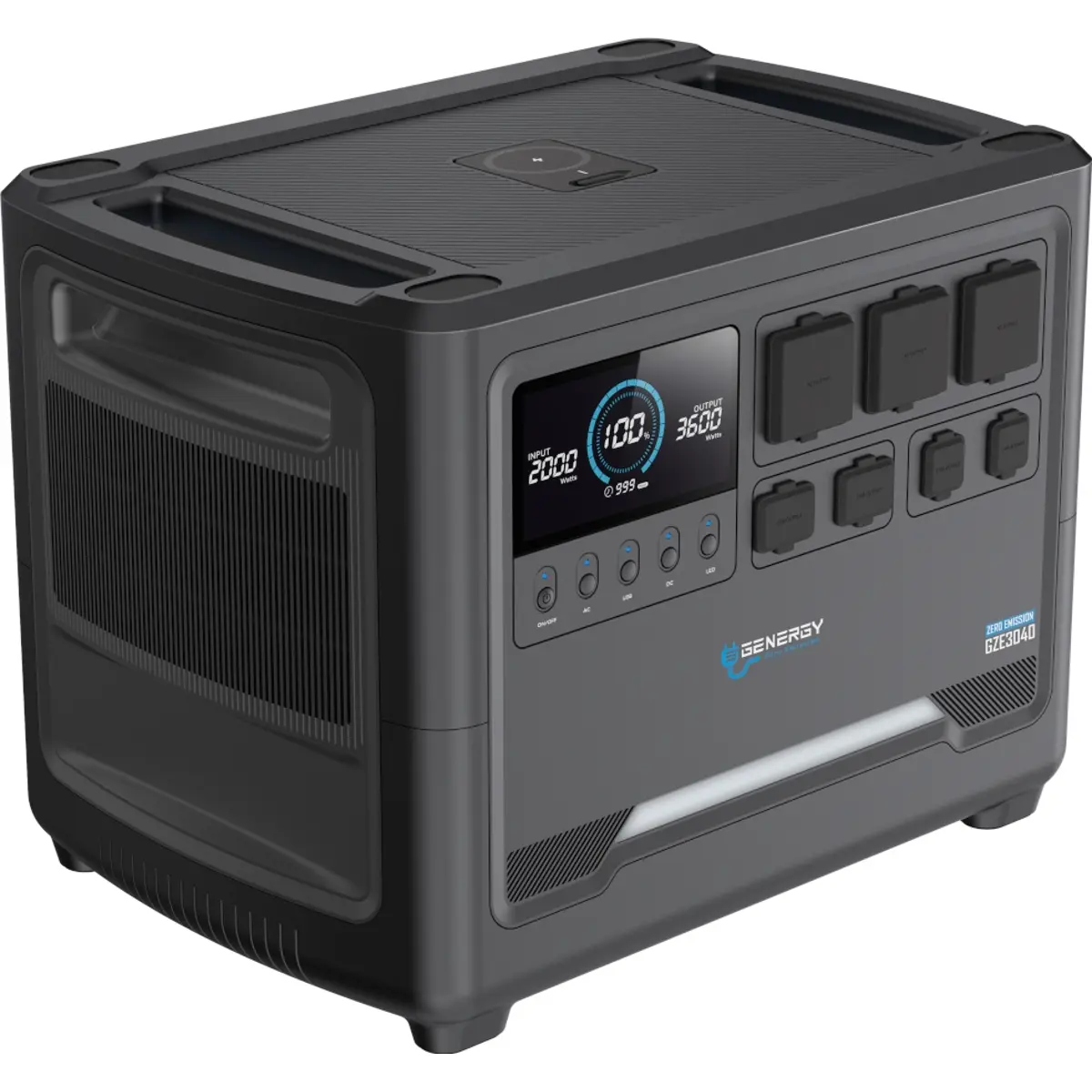 A GENERGY GZE3040 é uma estação de energia (Power Station) portátil de elevada capacidade, concebida para fornecer alimentação fiável e sem emissões em ambientes domésticos, profissionais ou ao ar livre. Com 3072Wh de capacidade e saída AC de 4000W (5000W de pico), integra tecnologia LiFePO4 de última geração, sistema inteligente BMS e controlador solar MPPT, garantindo desempenho, segurança e longa vida útil.
