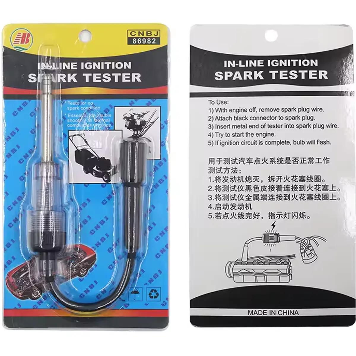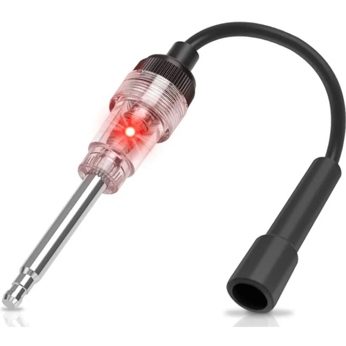 Instalado entre o cabo da vela e a vela de ignição, o equipamento indica visualmente, através de uma lâmpada de néon integrada numa câmara transparente, se existe faísca durante a tentativa de arranque. Compacto, portátil e sem necessidade de alimentação externa, é ideal para oficinas, assistência técnica e manutenção de equipamentos motorizados.