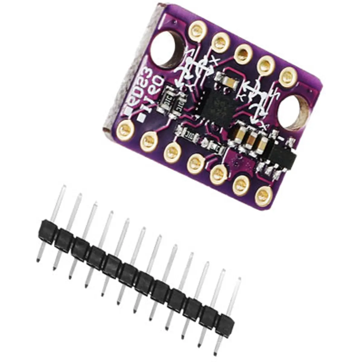 O módulo inclui um regulador de tensão interno, o que permite alimentá-lo com 5V sem danificar o sensor que opera nativamente a 1.8V-3.3V.