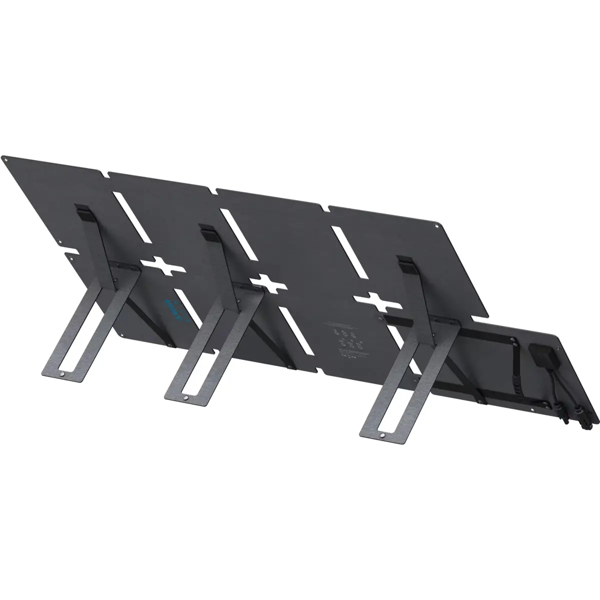 Quando dobrado, o painel assume dimensões próximas de um formato A4, facilitando o transporte numa mochila ou numa mão. A construção robusta com estrutura em fibra de vidro flexível, superfície resistente a riscos e proteção IP68 contra água e poeiras garante elevada durabilidade e utilização segura em ambientes exteriores exigentes.