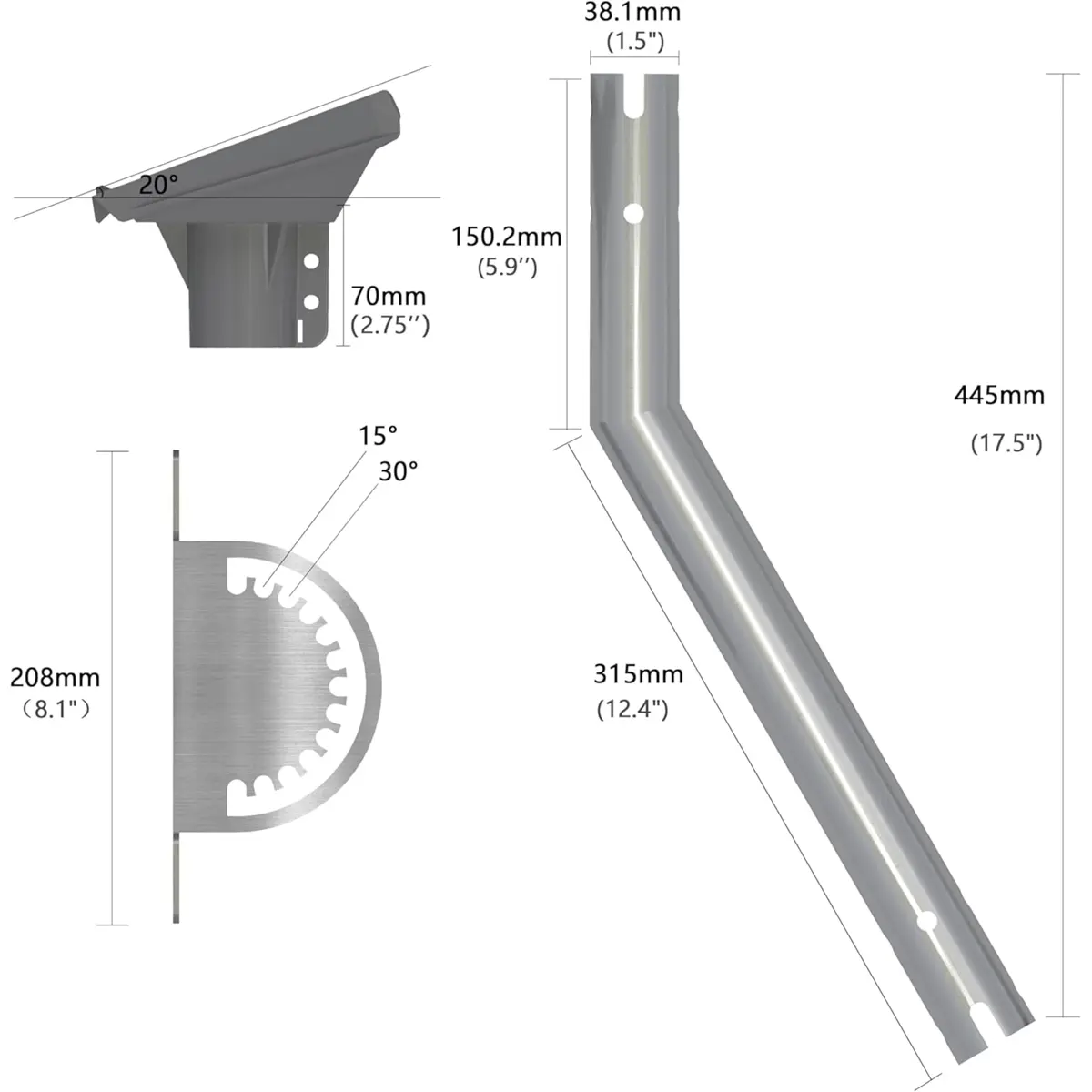· O adaptador de tubo já inclui uma inclinação pré-definida de 20 graus para facilitar a instalação "out of the box".